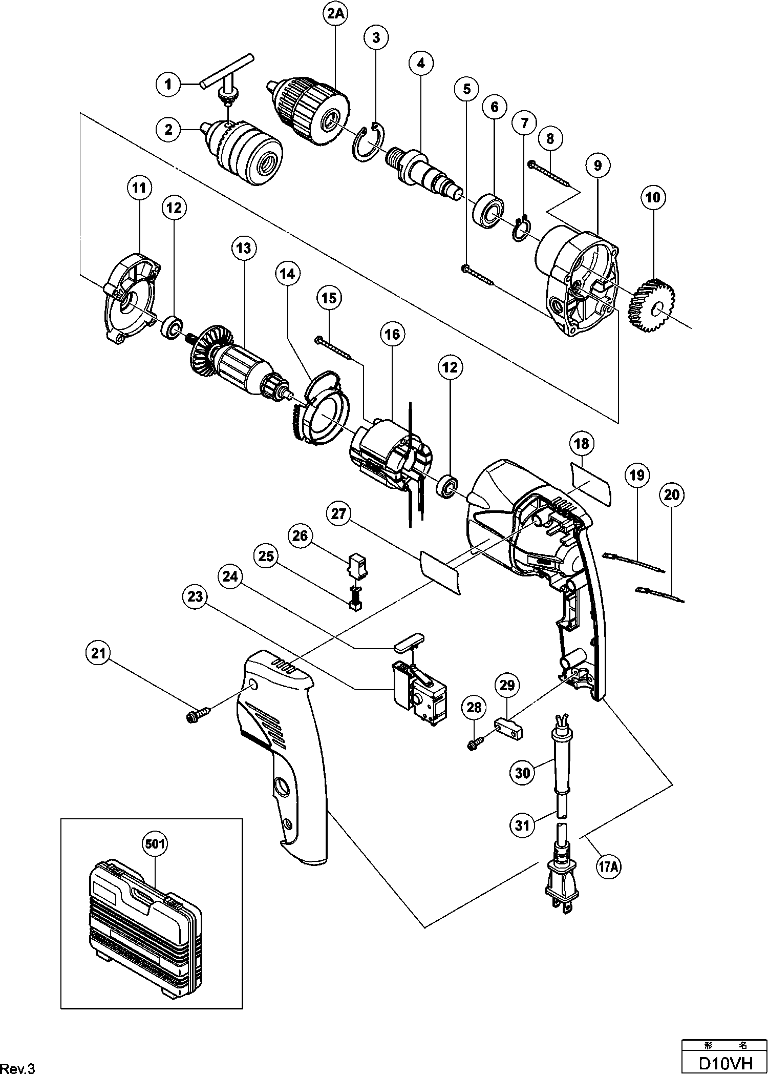 Lista de las piezas de repuesto de Hikoki D10VH
