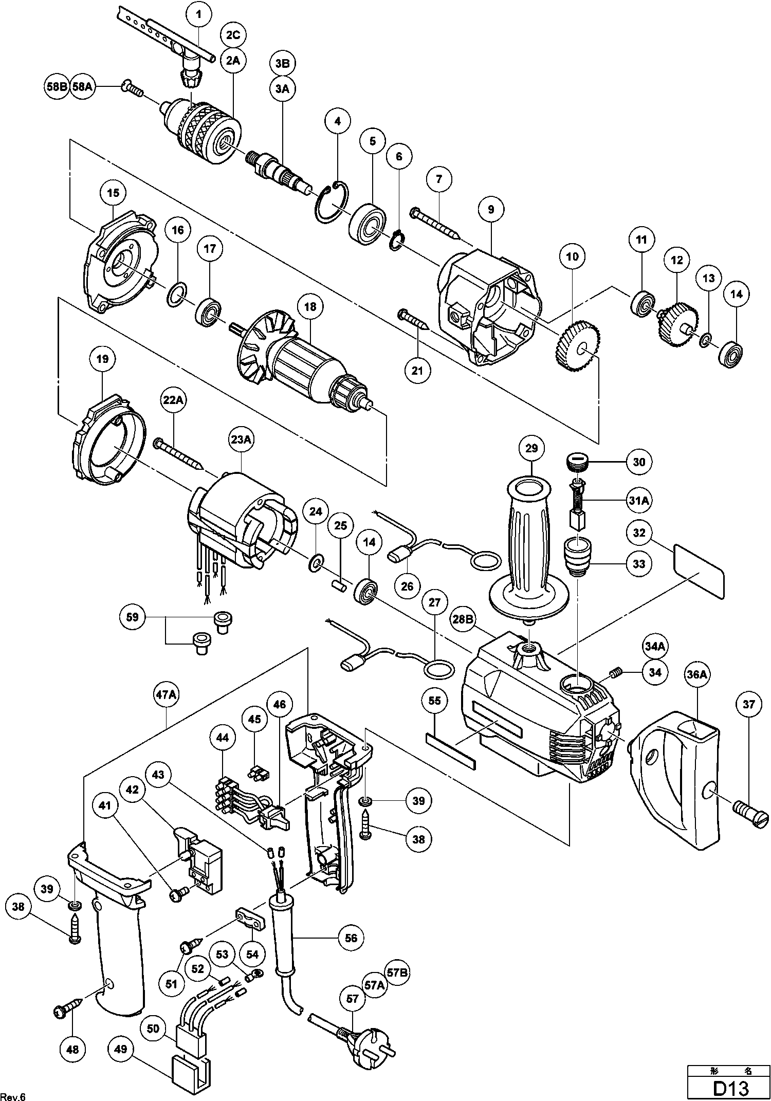 Lista de las piezas de repuesto de Hikoki D13