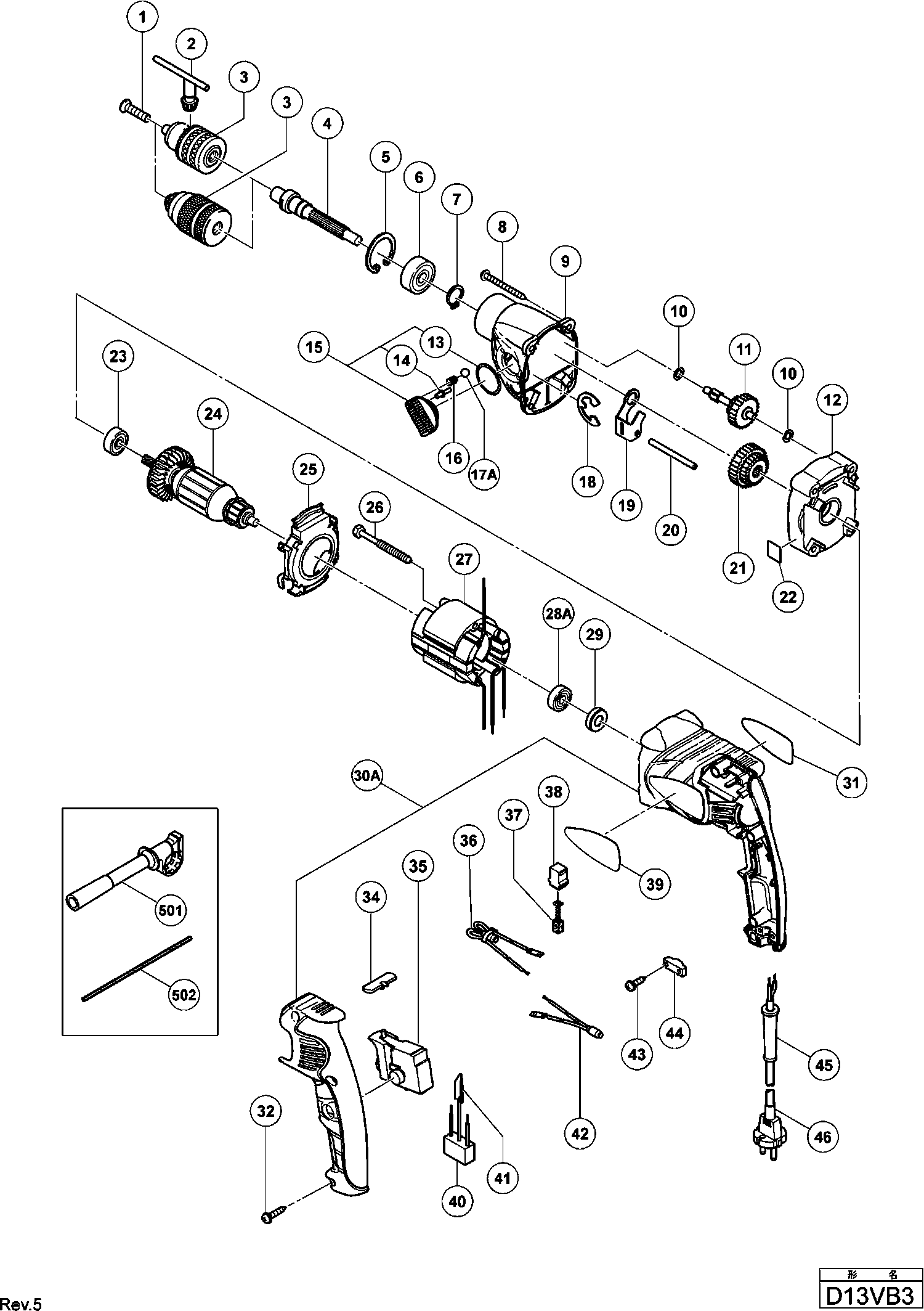 Lista de las piezas de repuesto de Hikoki D13VB3