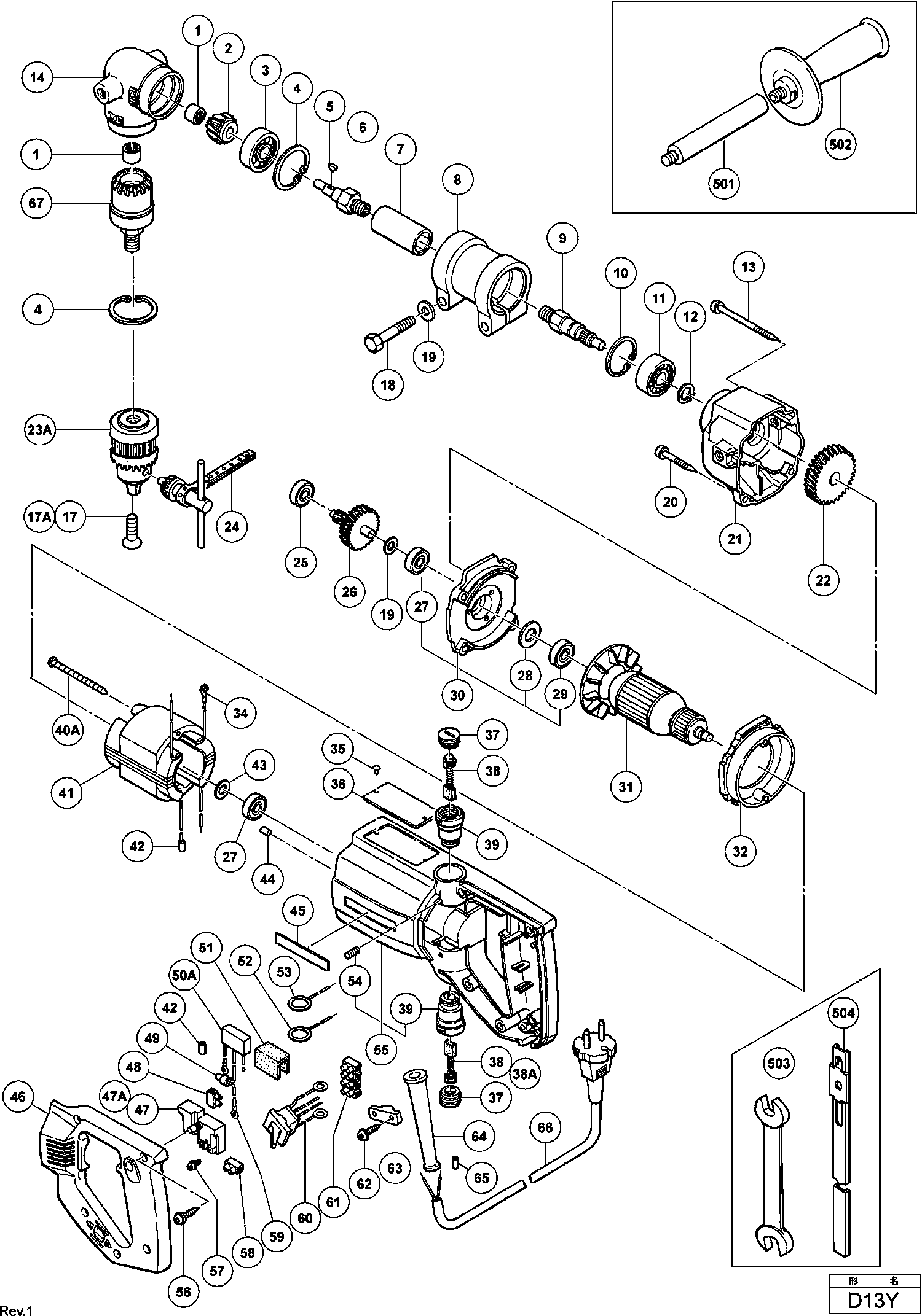 Lista de las piezas de repuesto de Hikoki D13Y