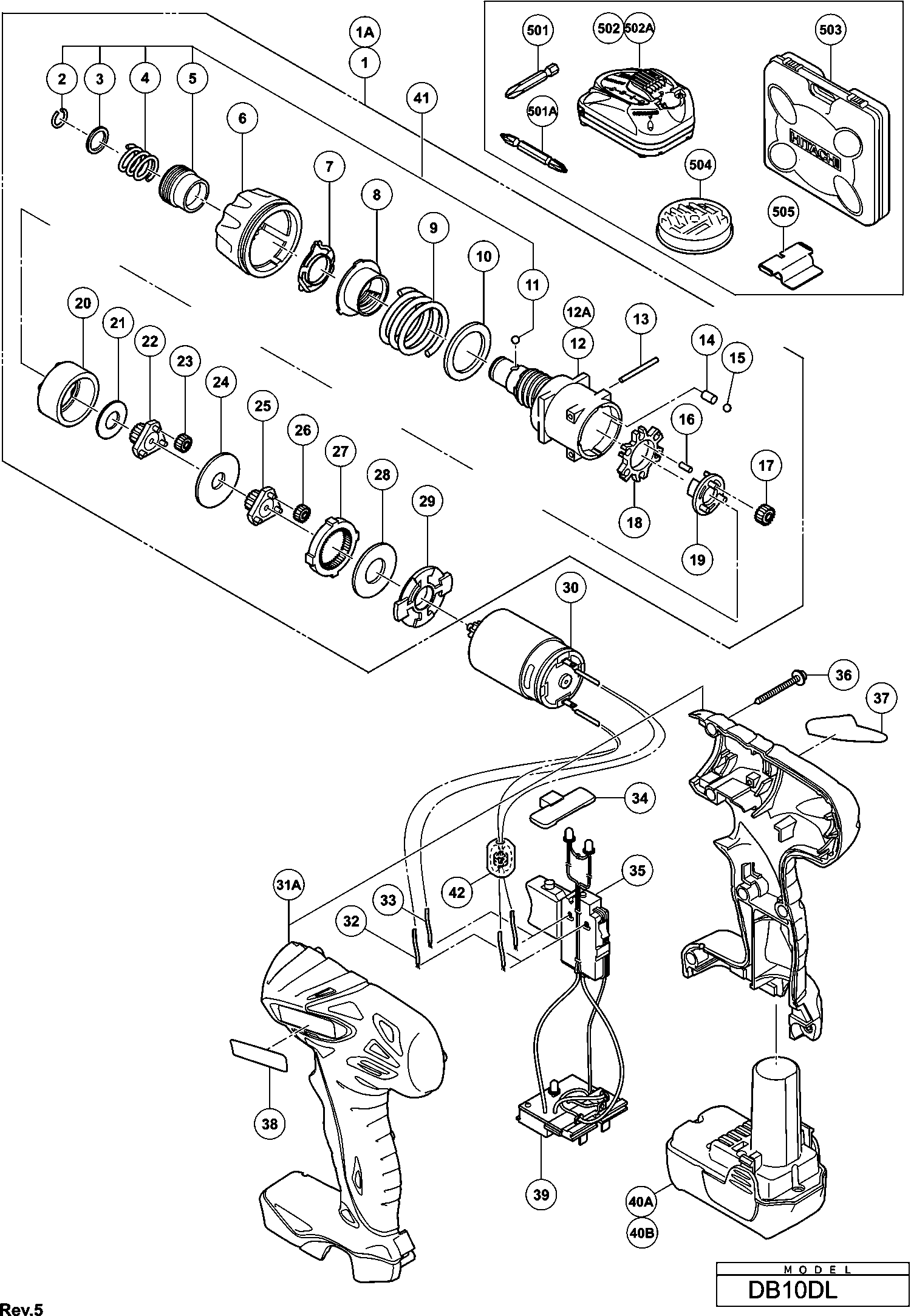 Lista de las piezas de repuesto de Hikoki DB10DL