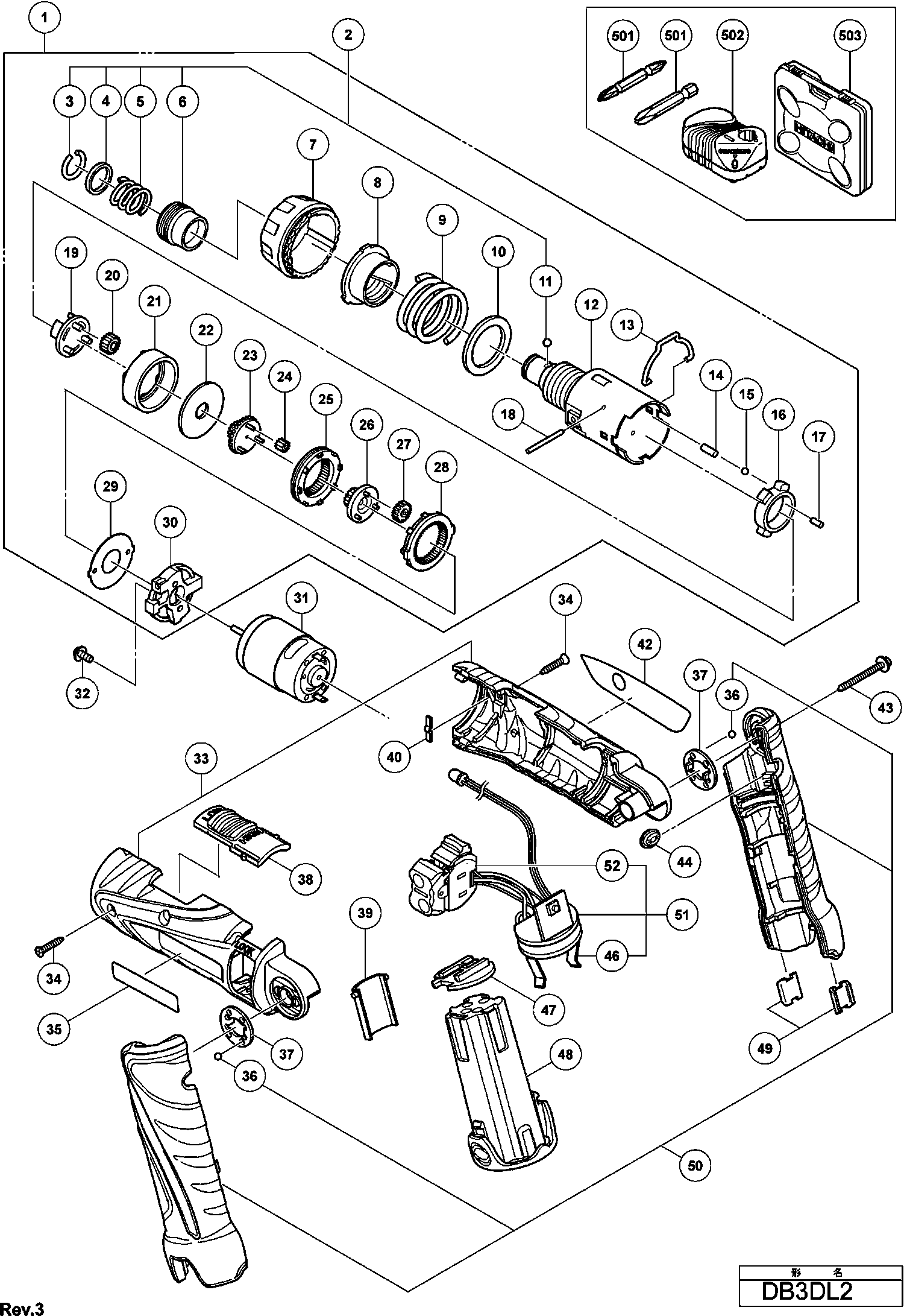 Lista de las piezas de repuesto de Hikoki DB3DL2