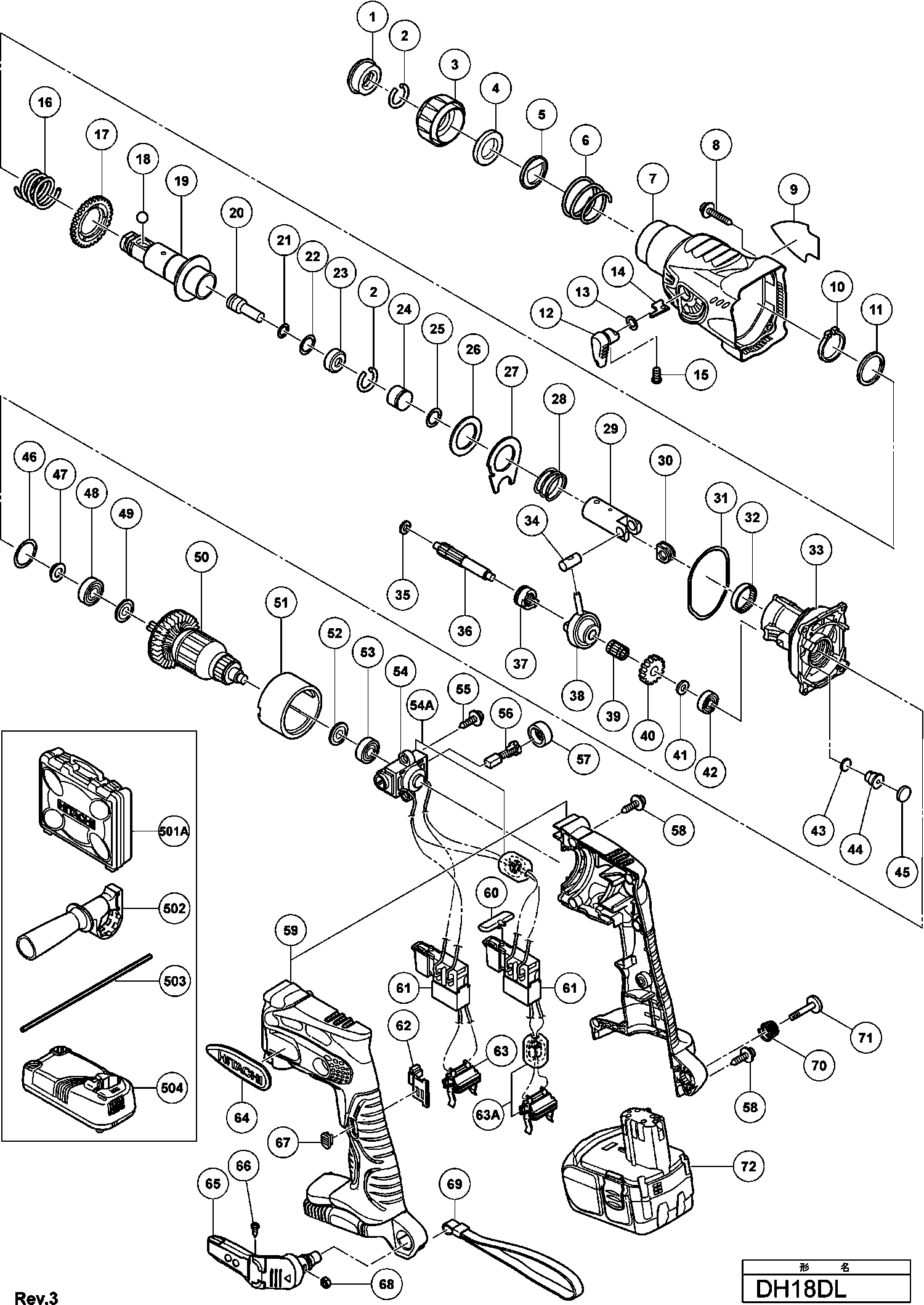 Lista de las piezas de repuesto de Hikoki DH18DL