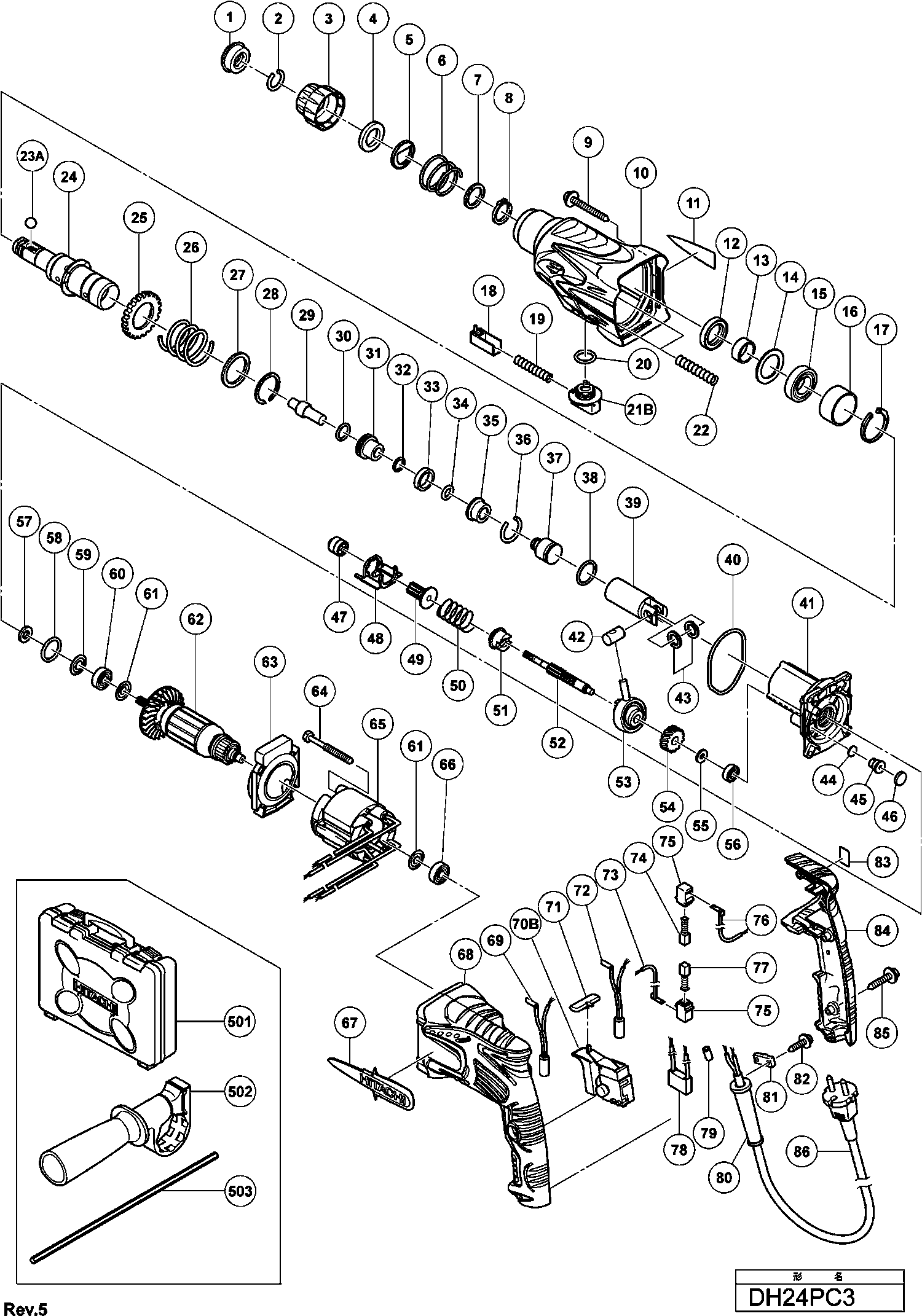 Lista de las piezas de repuesto de Hikoki DH24PC3