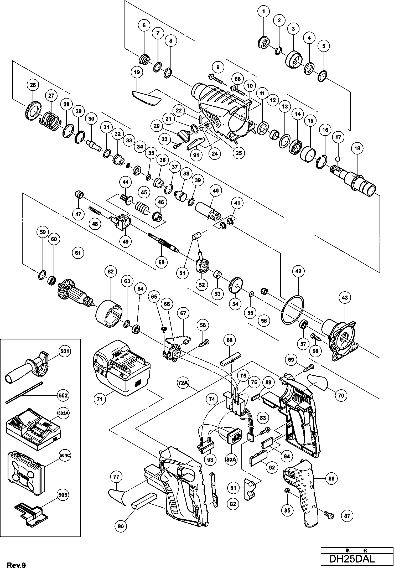 Aquí encontrará todas las piezas y dibujos técnicos disponibles de 'Hikoki DH25DAL'. Desde aquí podrá pedir todas las piezas deseadas directamente. Para muchas piezas de repuesto, es necesario pasar un pedido al fabricante. Dependiendo de la marca, el plazo de entrega puede variar entre una y cuatro semanas. Toda la información que tenemos está en nuestro sitio web. No podremos aconsejarle sobre lo que necesita hasta que entregue la máquina para su reparación. Tenga en cuenta lo siguiente a la hora de cursar su pedido: