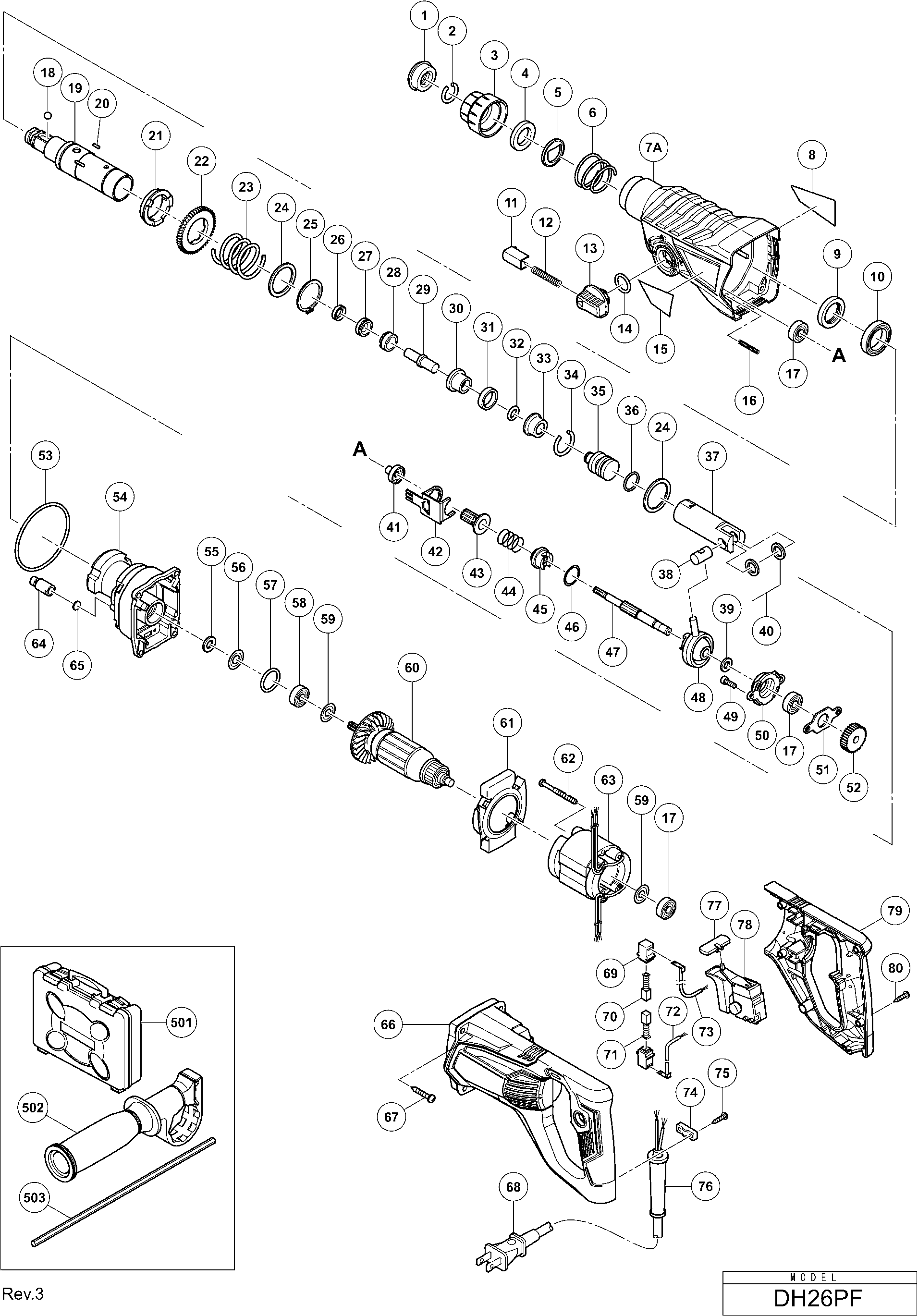 Lista de las piezas de repuesto de Hikoki DH26PF