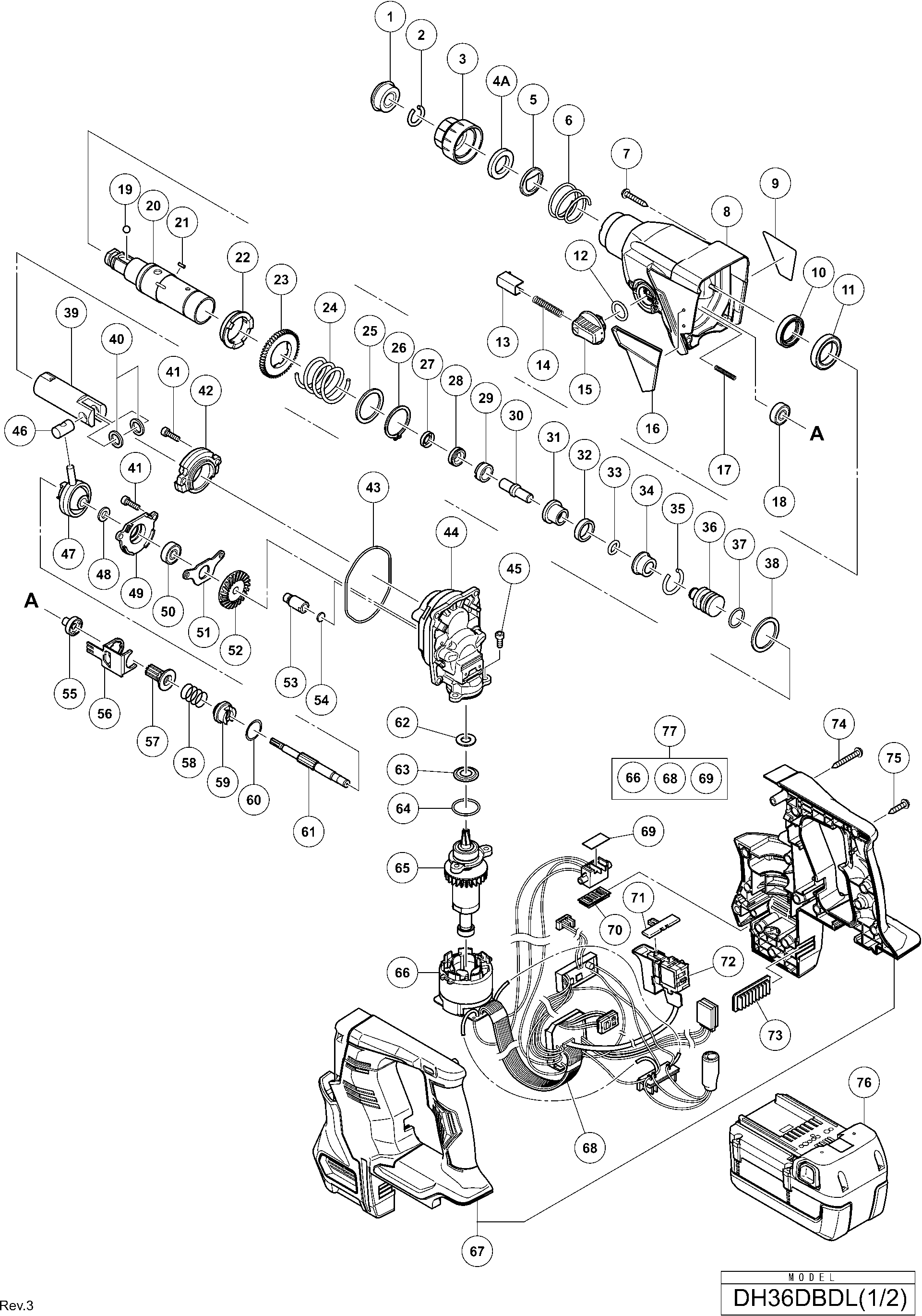 Lista de las piezas de repuesto de Hikoki DH36DBDL