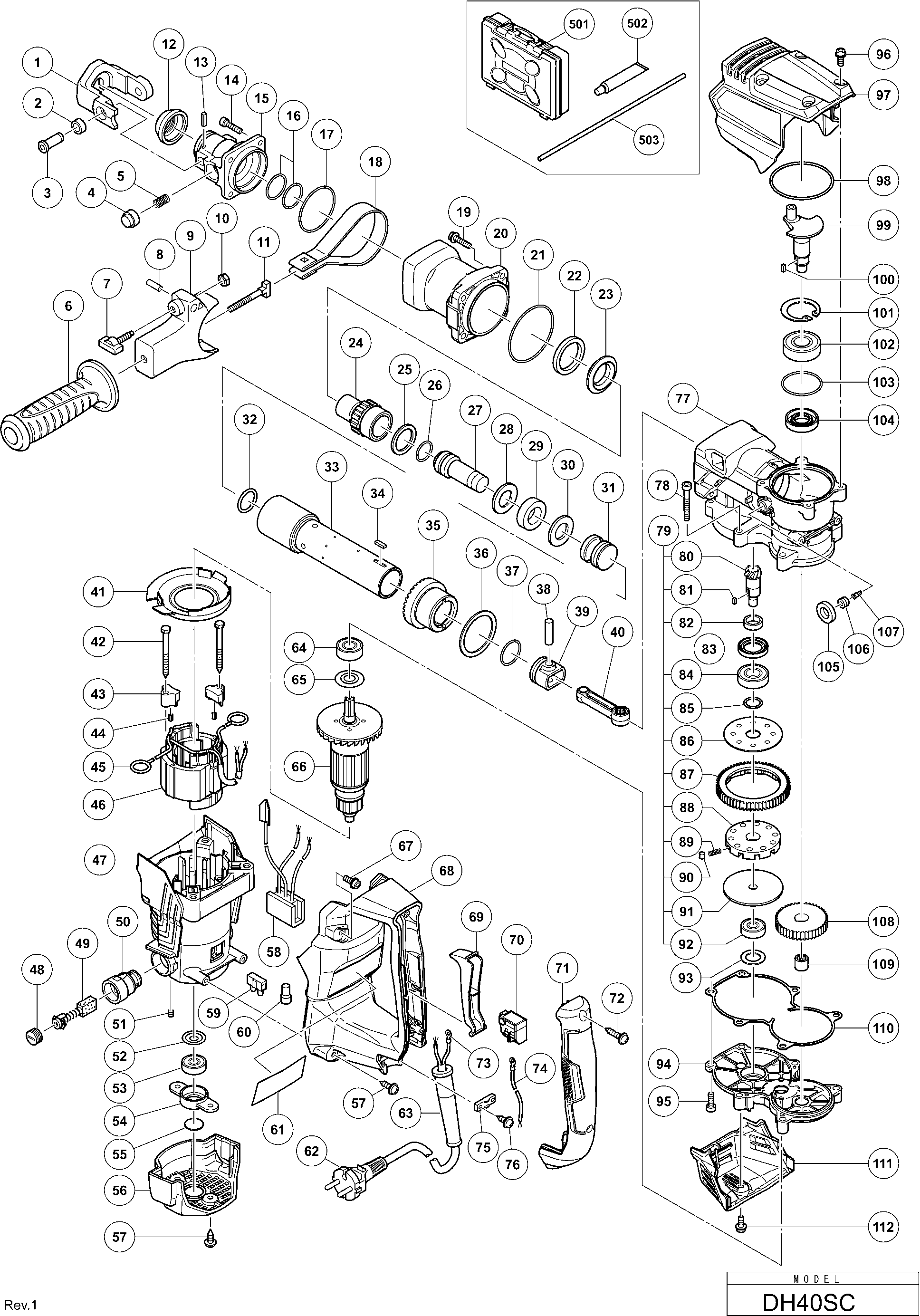 Aquí encontrará todas las piezas y dibujos técnicos disponibles de 'Hikoki DH40SC'. Desde aquí podrá pedir todas las piezas deseadas directamente. Para muchas piezas de repuesto, es necesario pasar un pedido al fabricante. Dependiendo de la marca, el plazo de entrega puede variar entre una y cuatro semanas. Toda la información que tenemos está en nuestro sitio web. No podremos aconsejarle sobre lo que necesita hasta que entregue la máquina para su reparación. Tenga en cuenta lo siguiente a la hora de cursar su pedido: