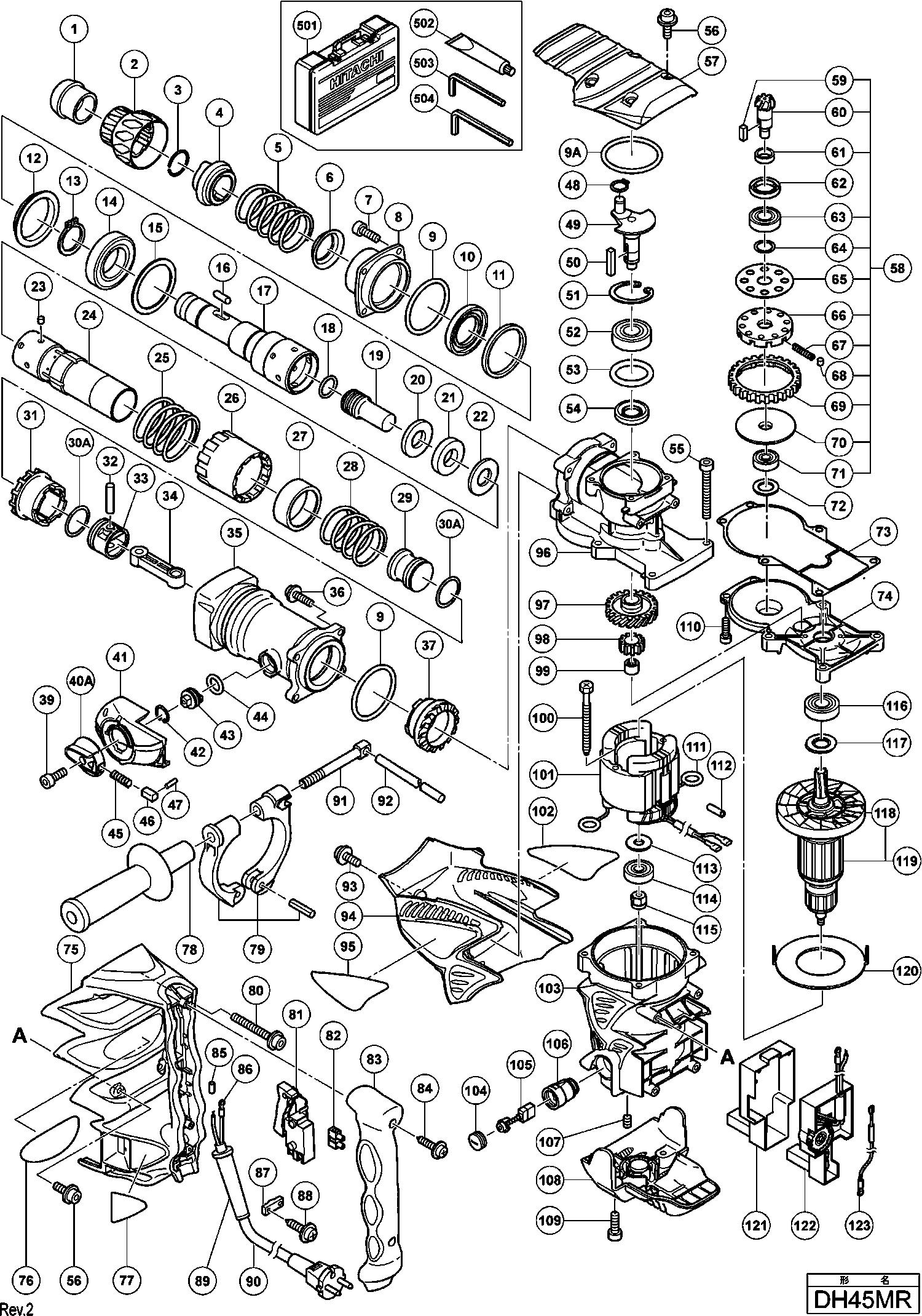 Lista de las piezas de repuesto de Hikoki DH45MR