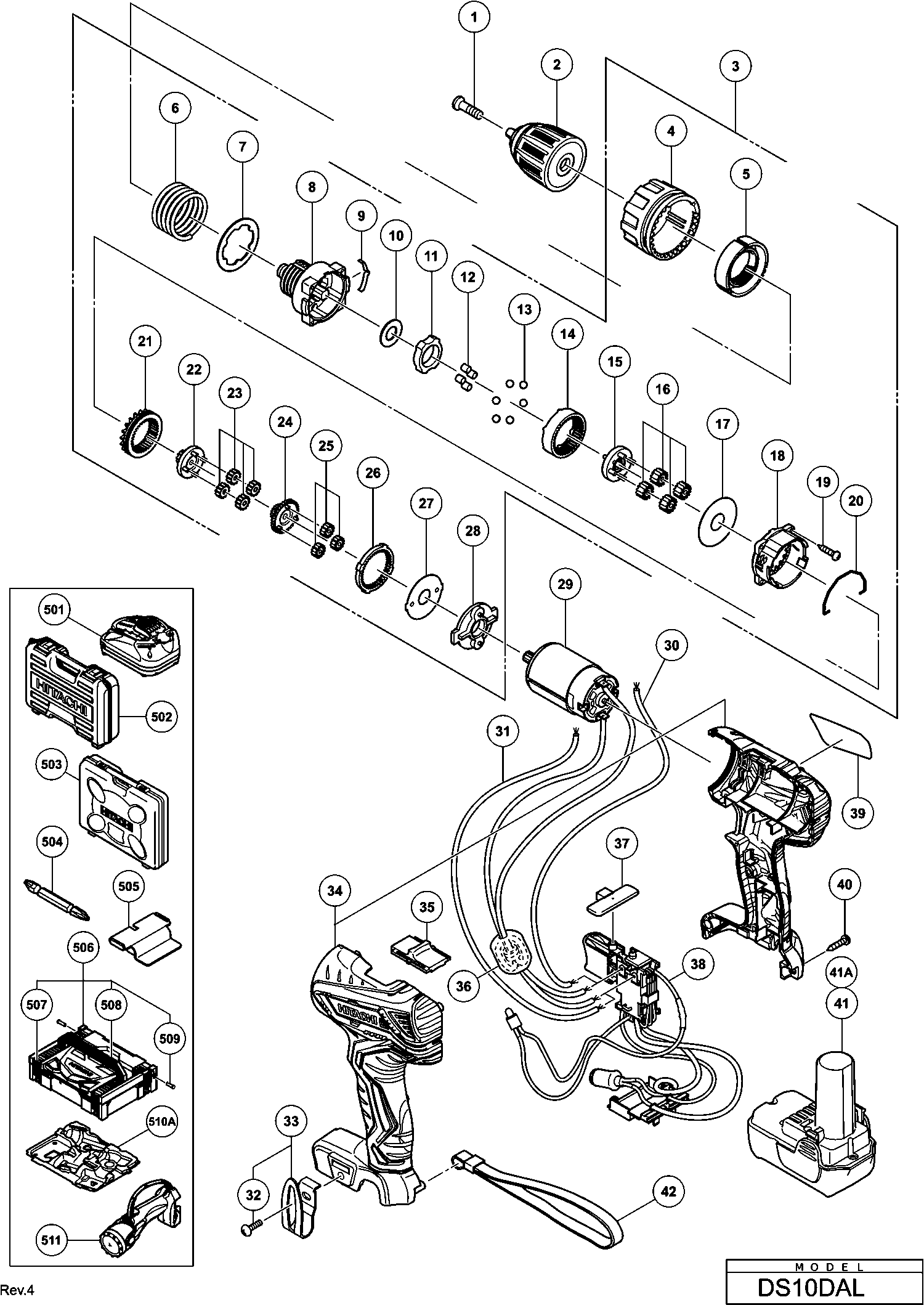 Lista de las piezas de repuesto de Hikoki DS10DAL