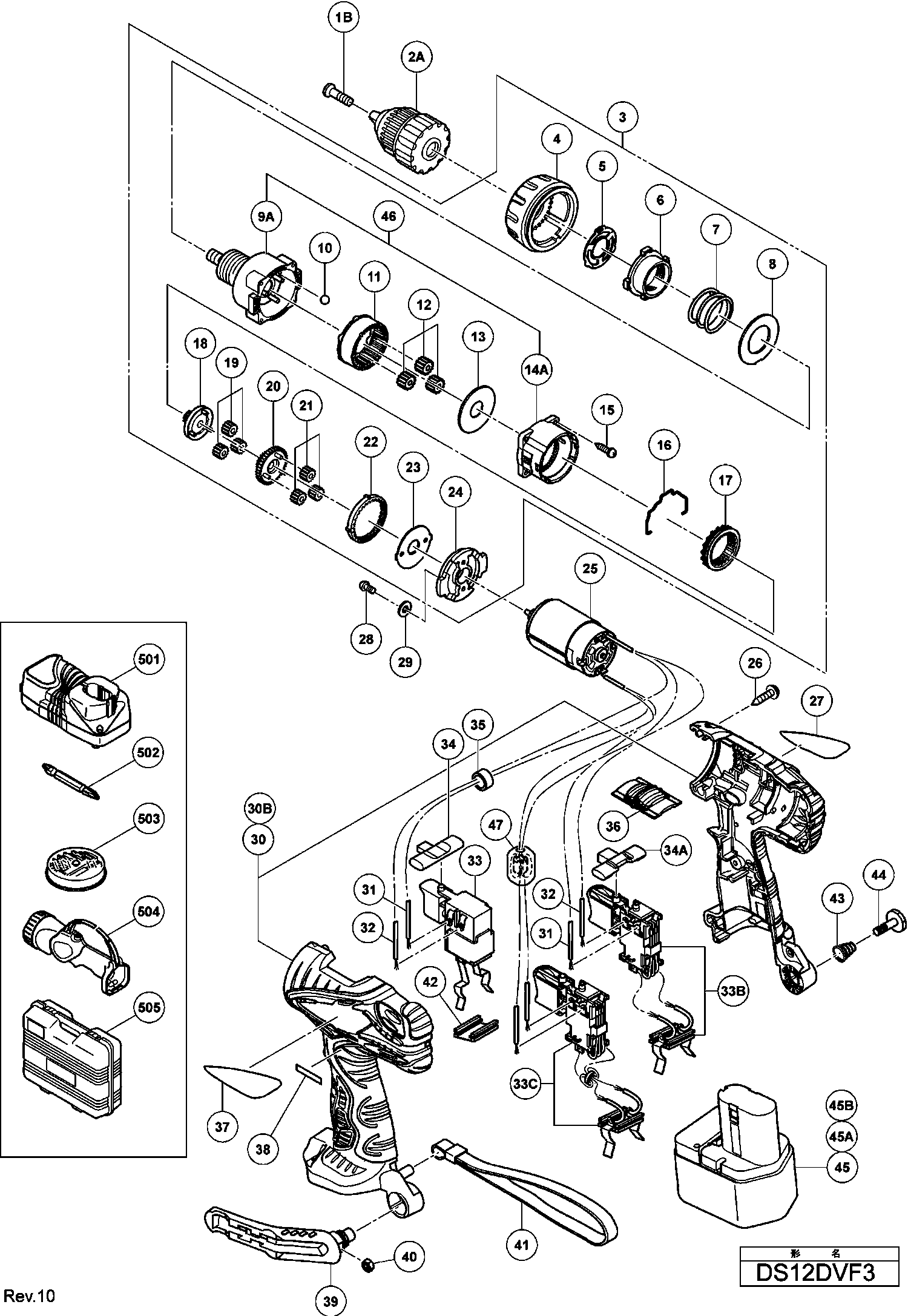 Lista de las piezas de repuesto de Hikoki DS12DVF3