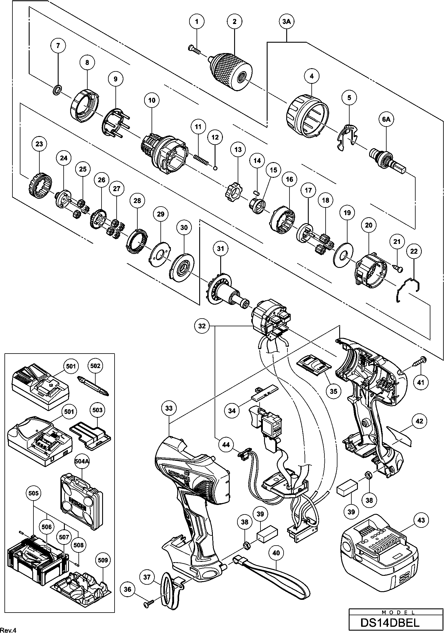Lista de las piezas de repuesto de Hikoki DS14DBEL