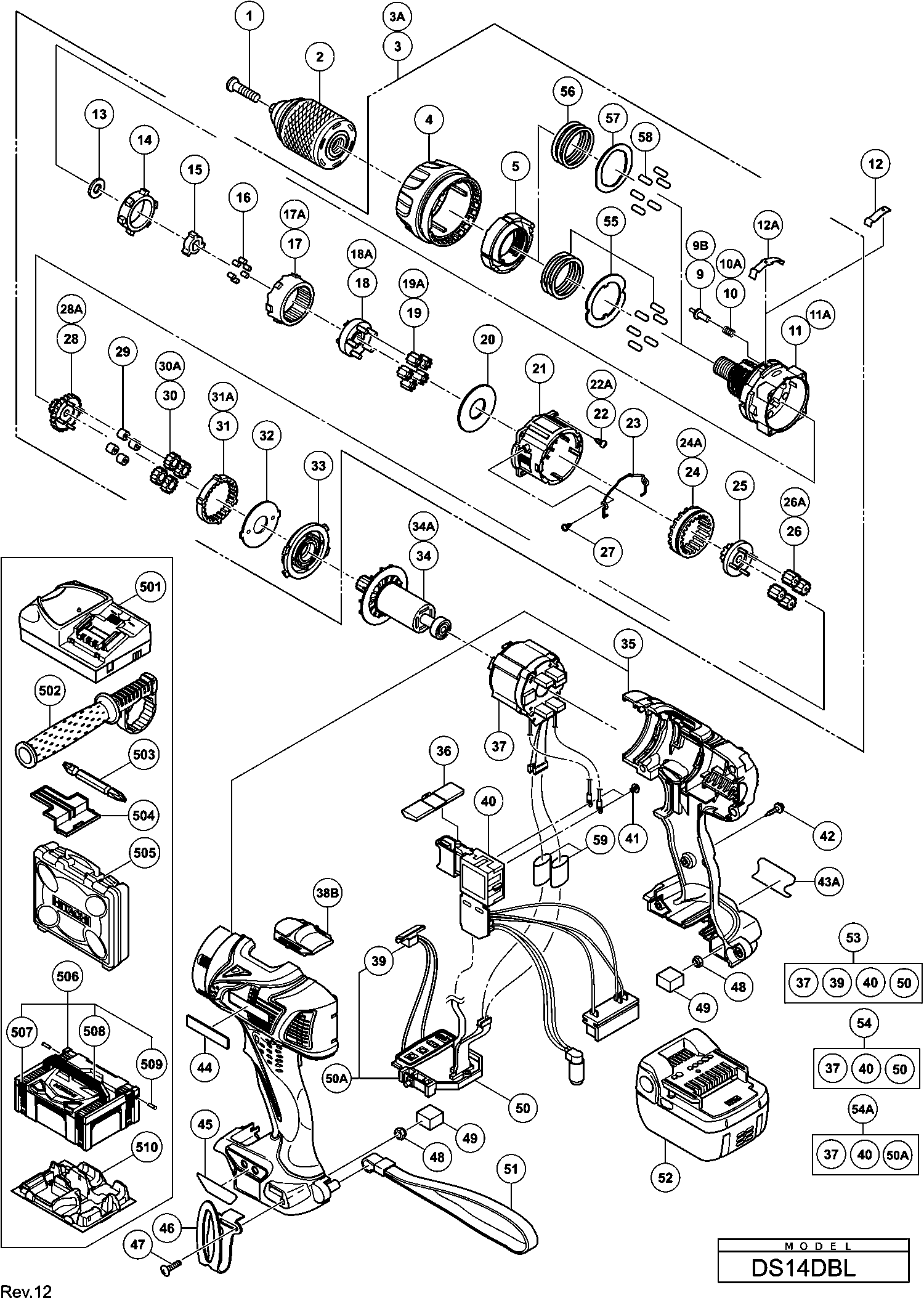 Lista de las piezas de repuesto de Hikoki DS14DBL