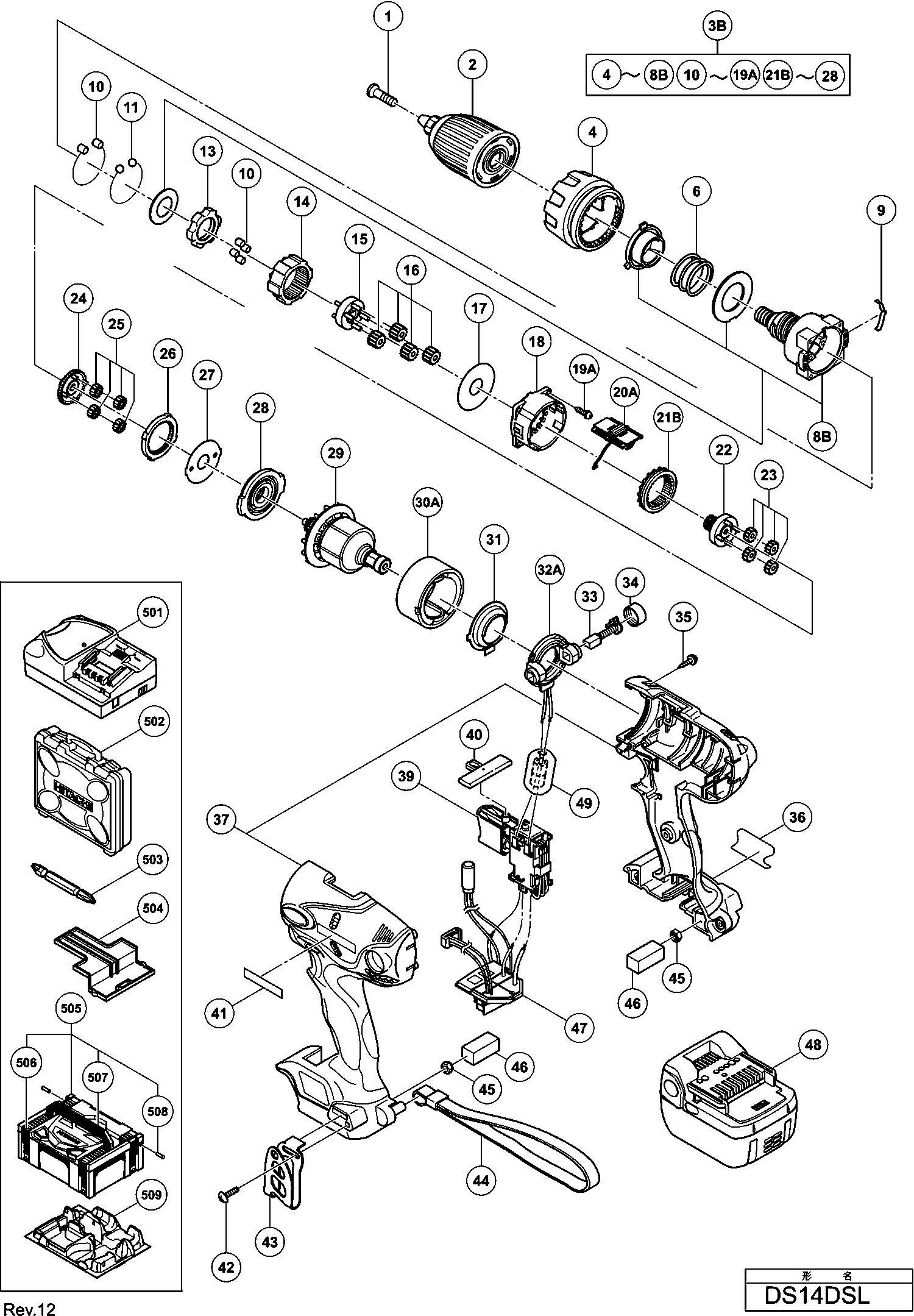 Lista de las piezas de repuesto de Hikoki DS14DSL