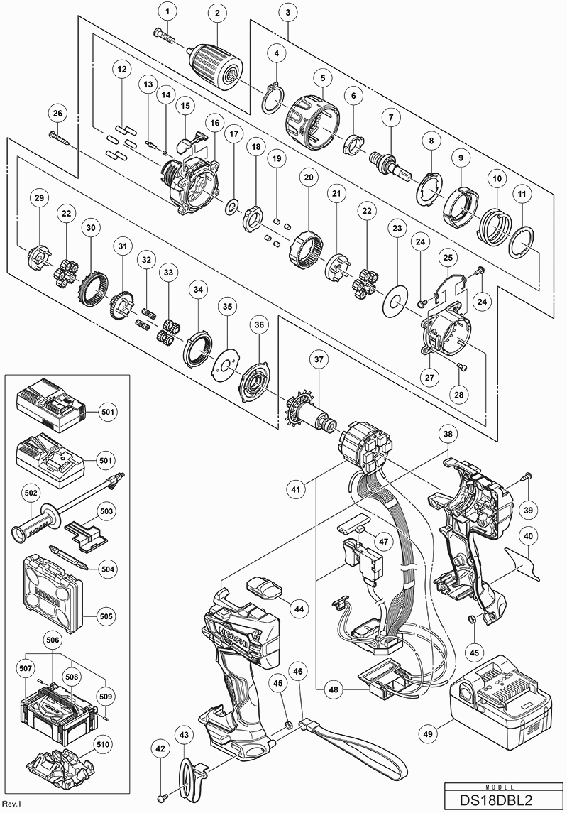 Lista de las piezas de repuesto de Hikoki DS18DBL2