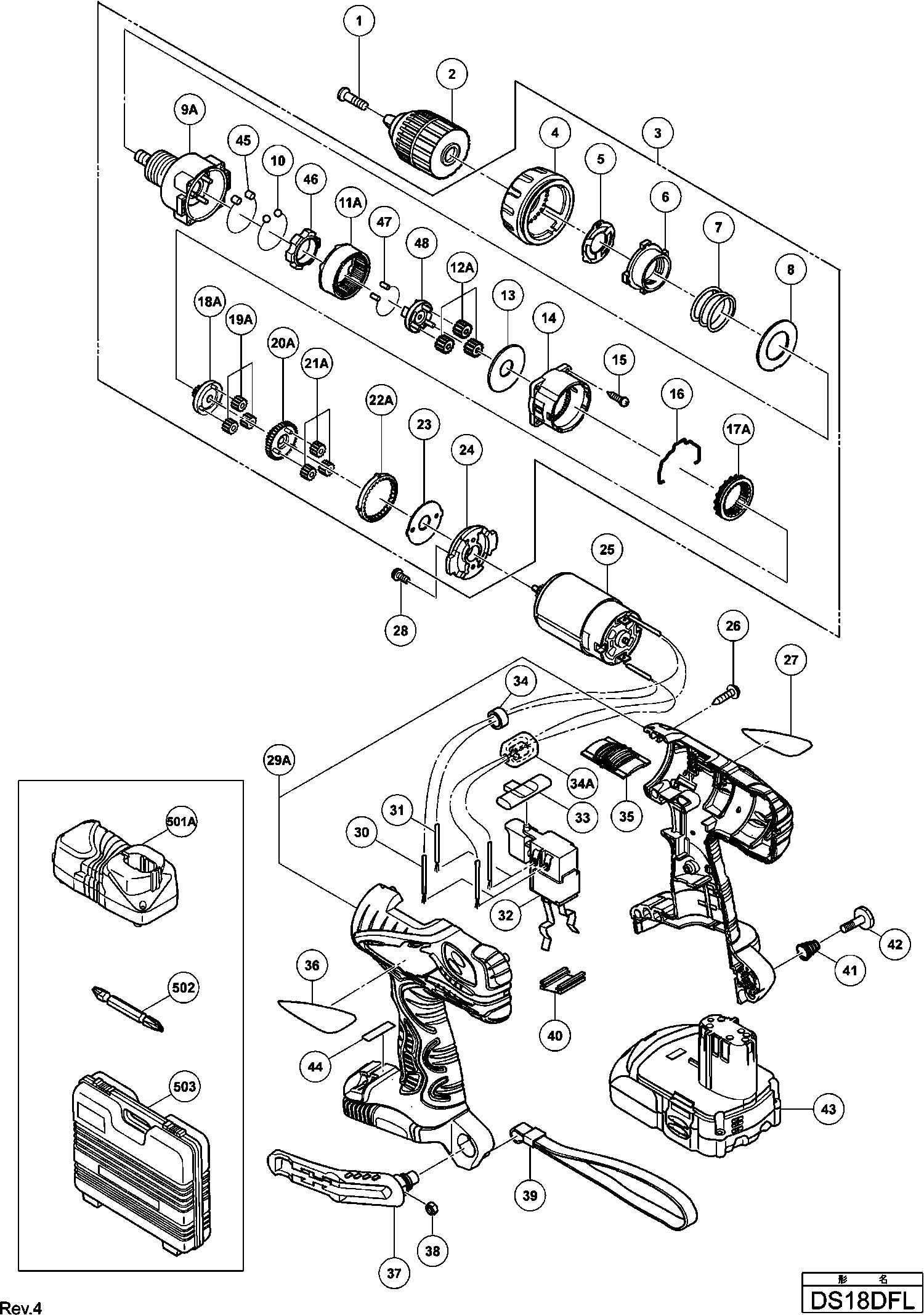 Lista de las piezas de repuesto de Hikoki DS18DFL
