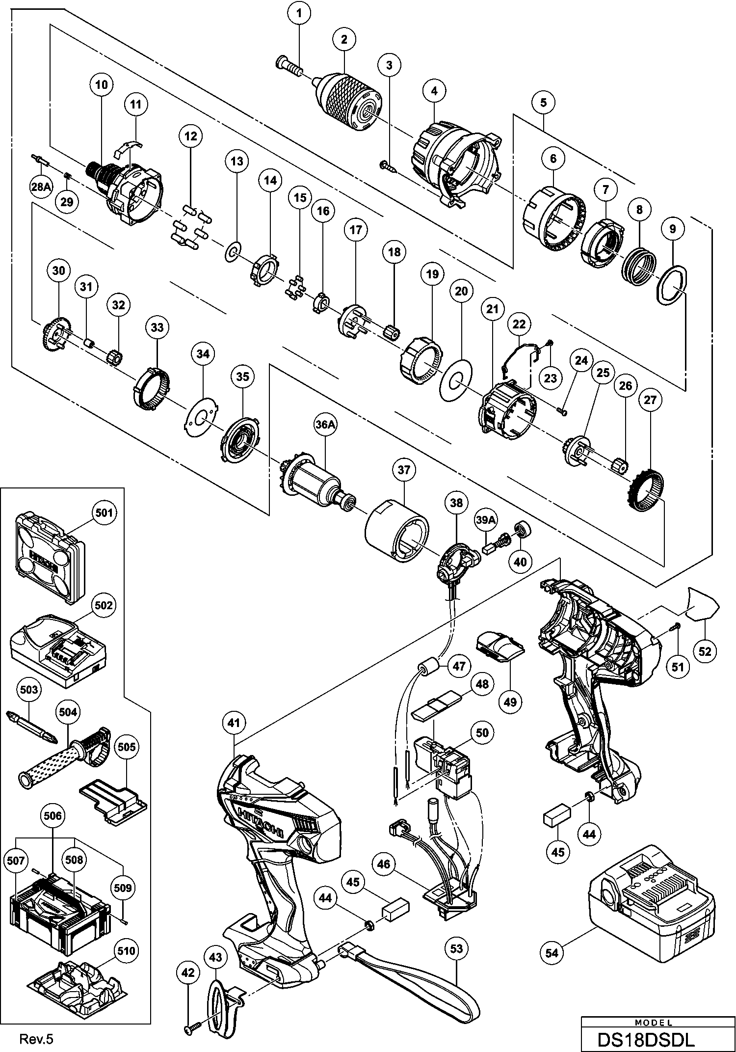 Lista de las piezas de repuesto de Hikoki DS18DSDL