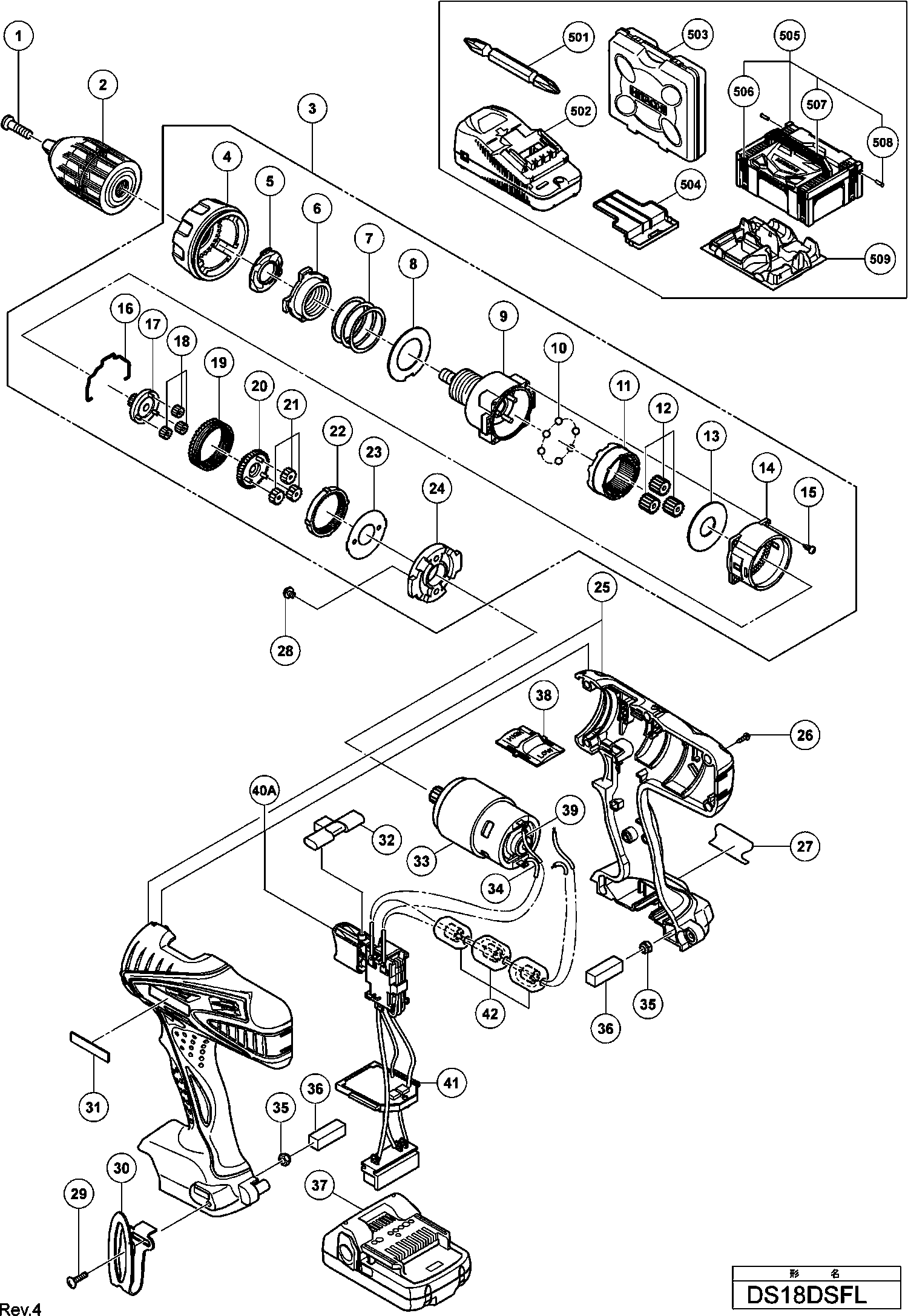 Dibujo técnico de los/las Hikoki DS18DSFL