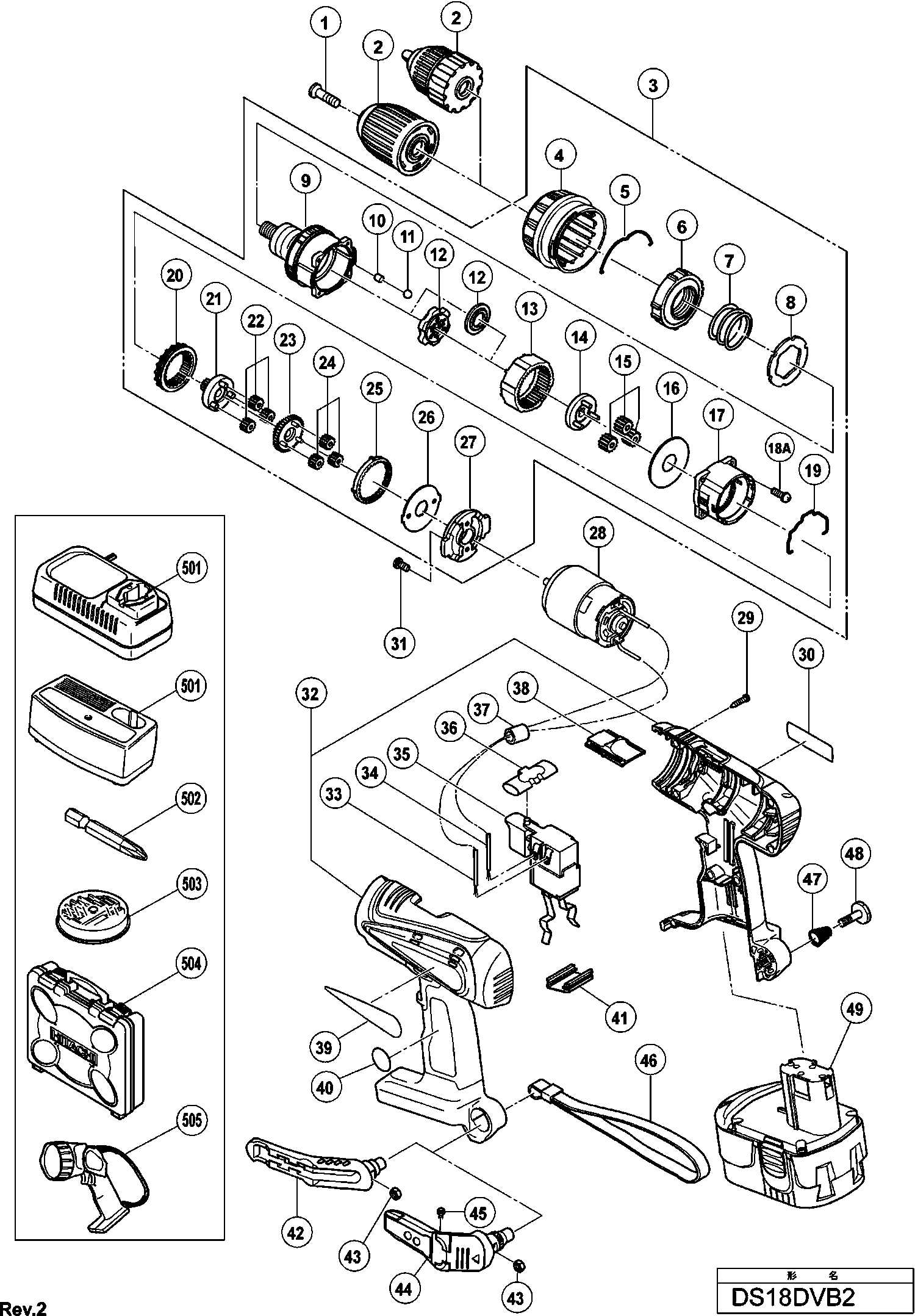 Lista de las piezas de repuesto de Hikoki DS18DVB2
