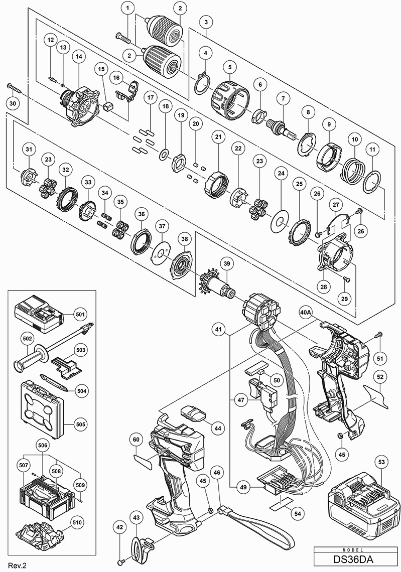 Lista de las piezas de repuesto de Hikoki DS36DAWRZ