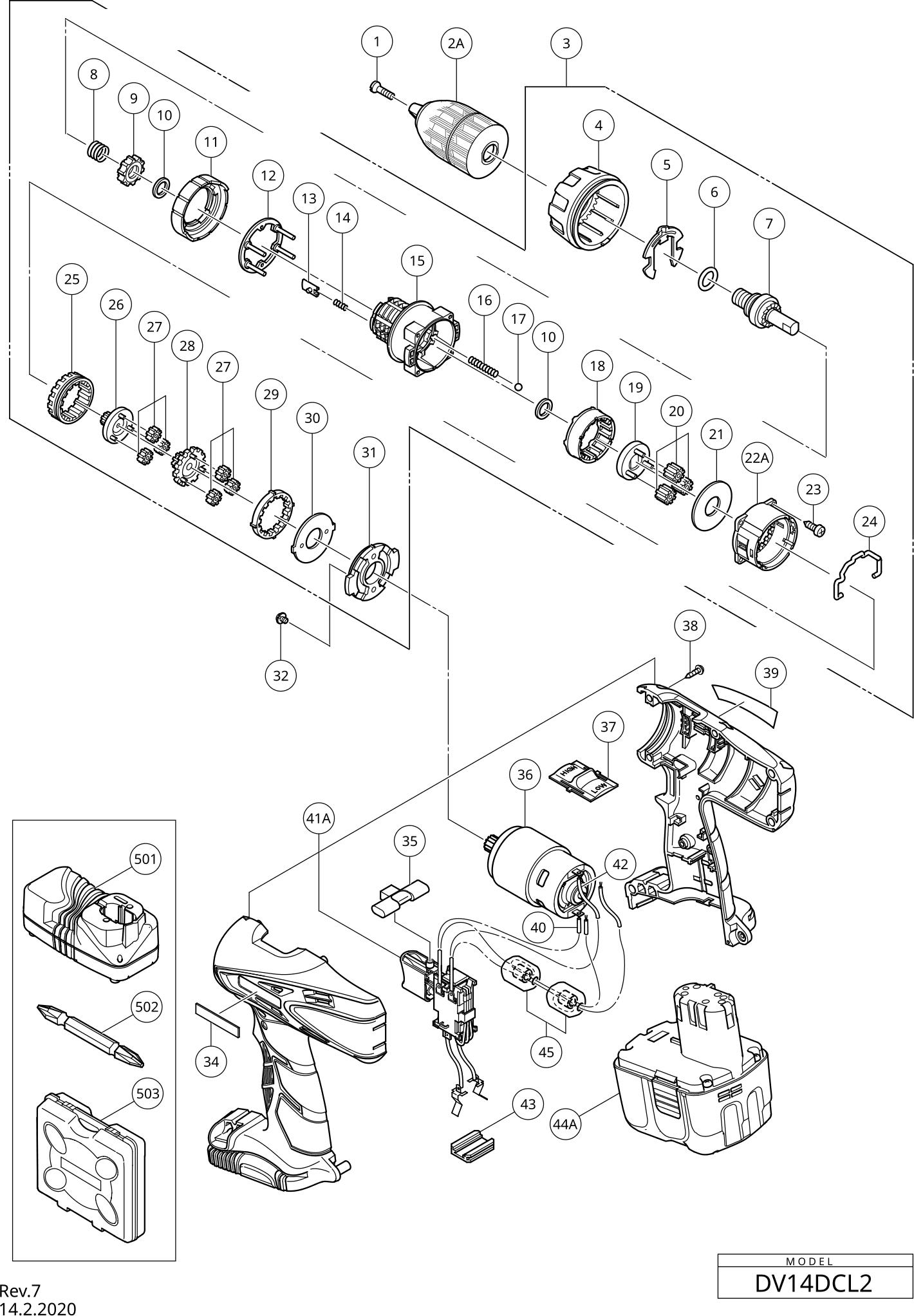 Lista de las piezas de repuesto de Hikoki DV14DCL2