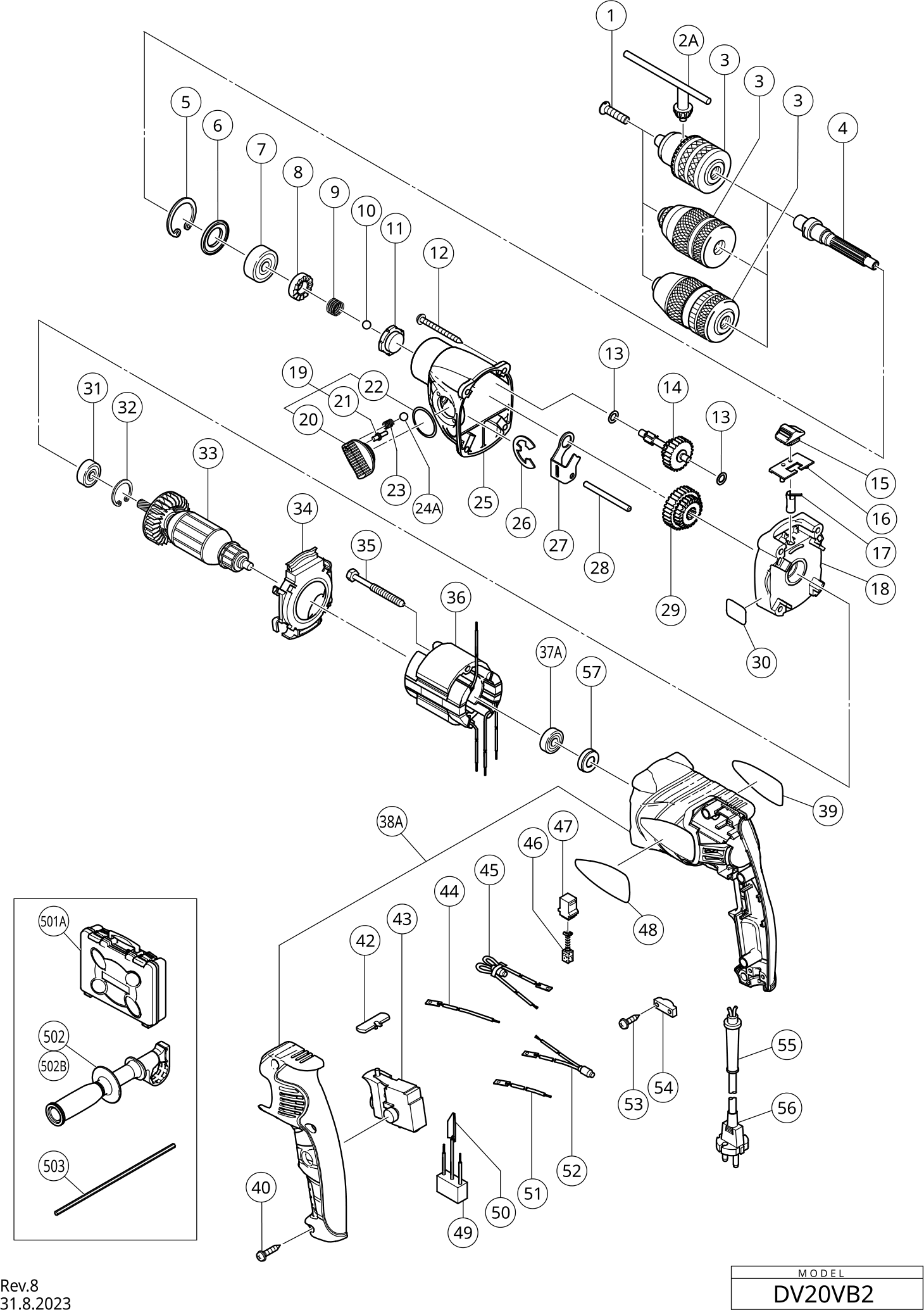 Lista de las piezas de repuesto de Hikoki DV20VB2