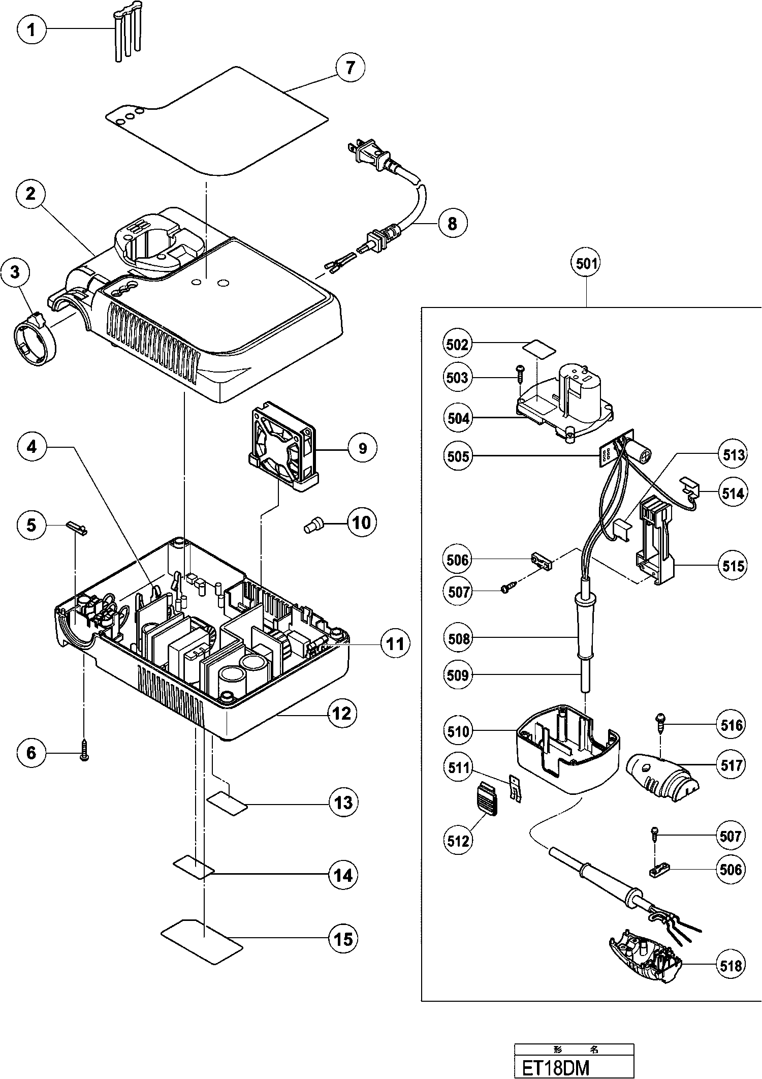 Lista de las piezas de repuesto de Hikoki ET18DM