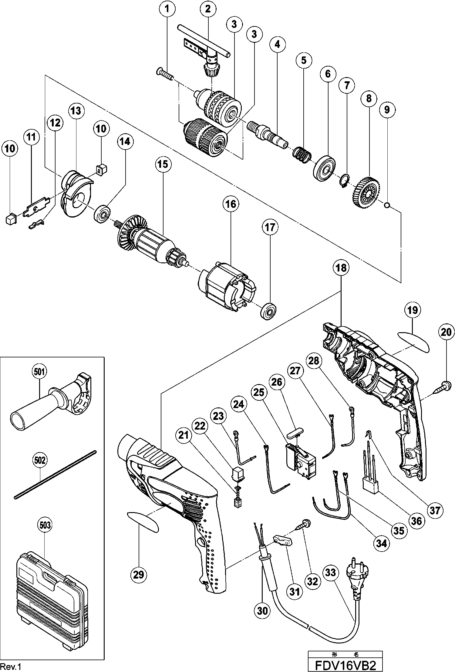 Lista de las piezas de repuesto de Hikoki FDV16VB2