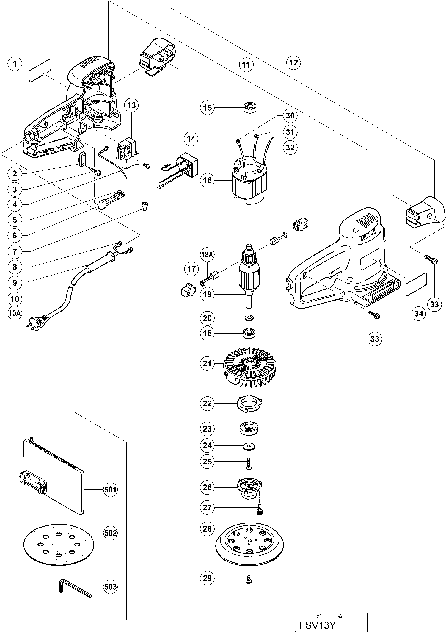 Lista de las piezas de repuesto de Hikoki FSV13Y