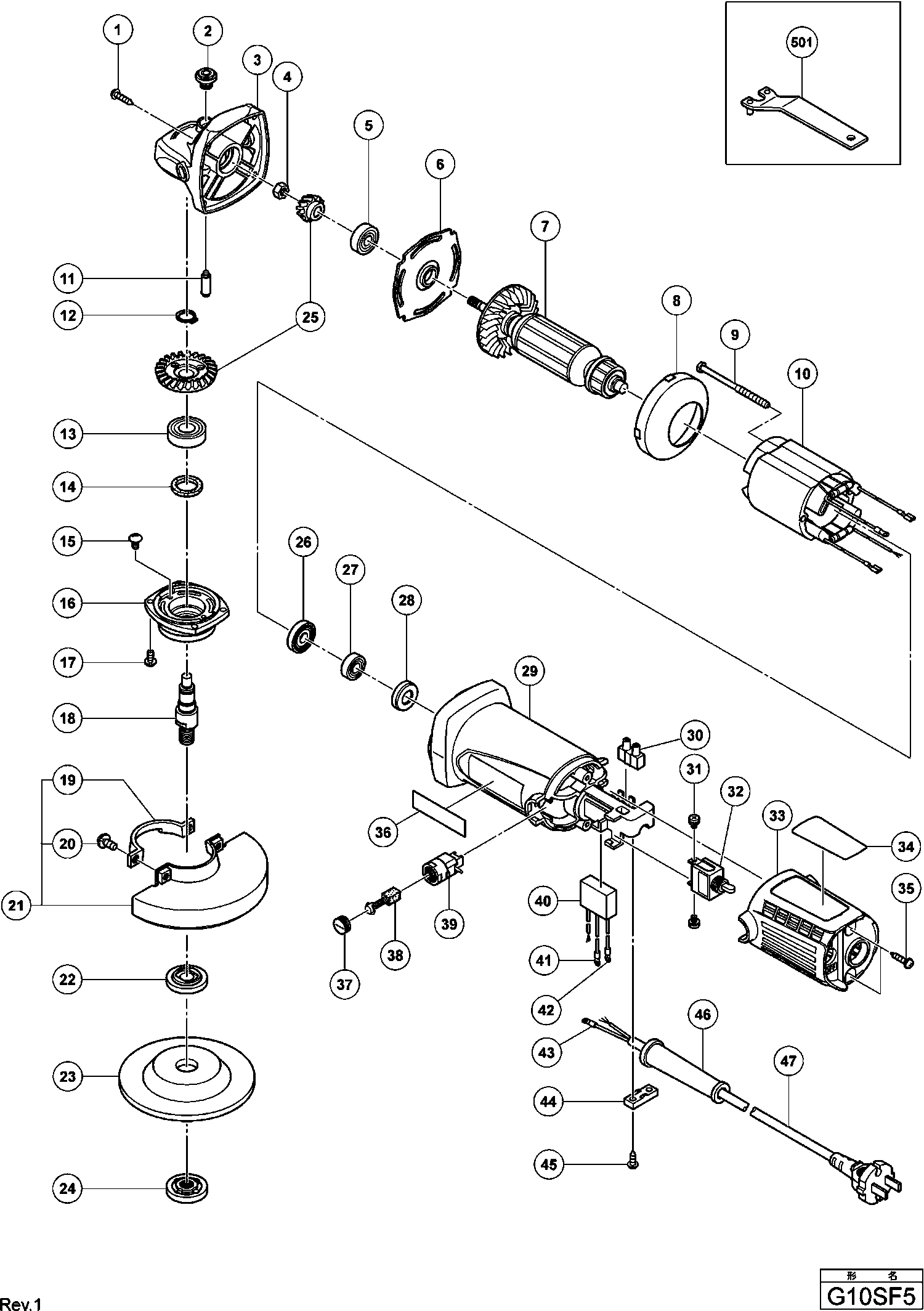 Lista de las piezas de repuesto de Hikoki G10SF5