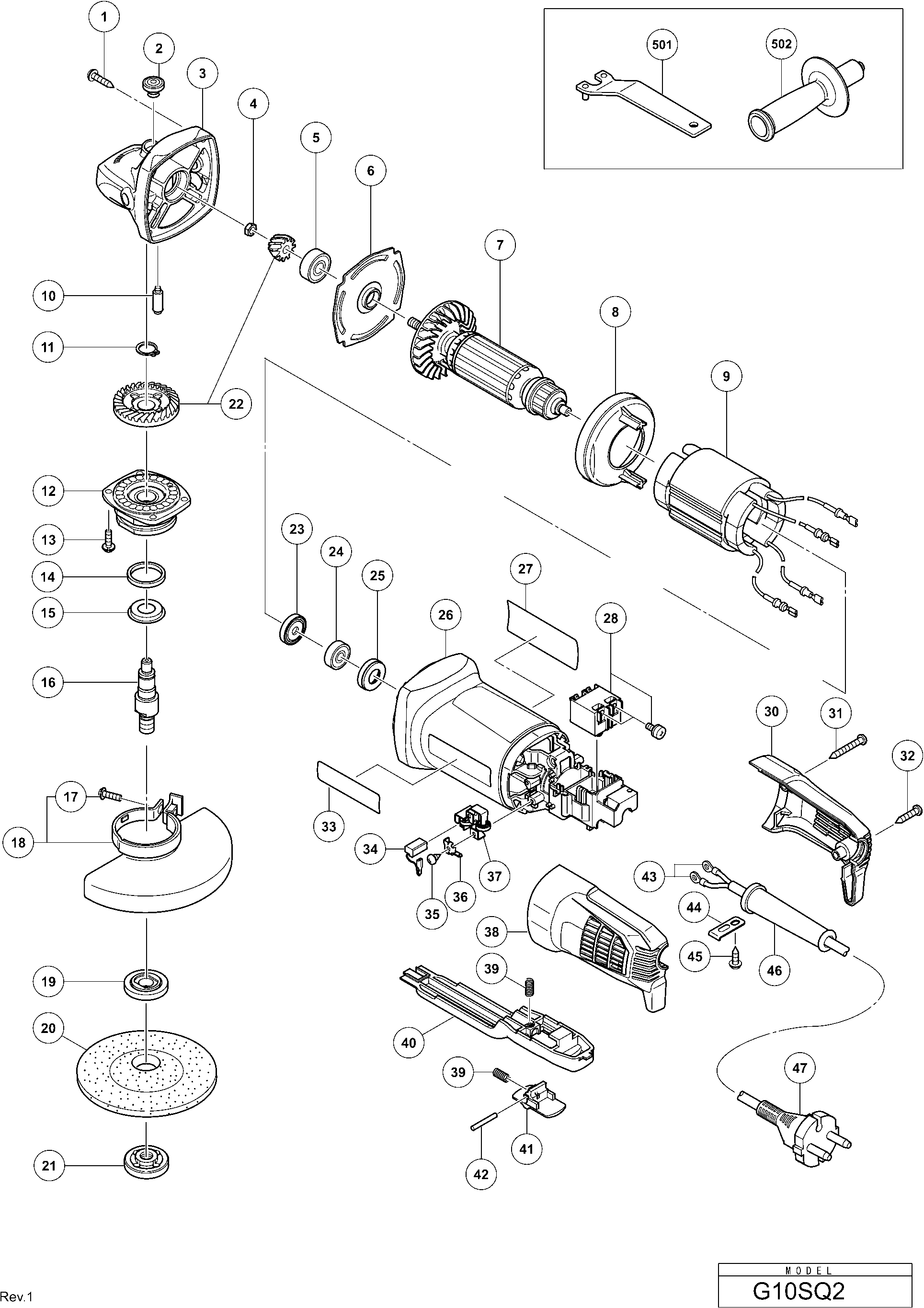 Lista de las piezas de repuesto de Hikoki G10SQ2