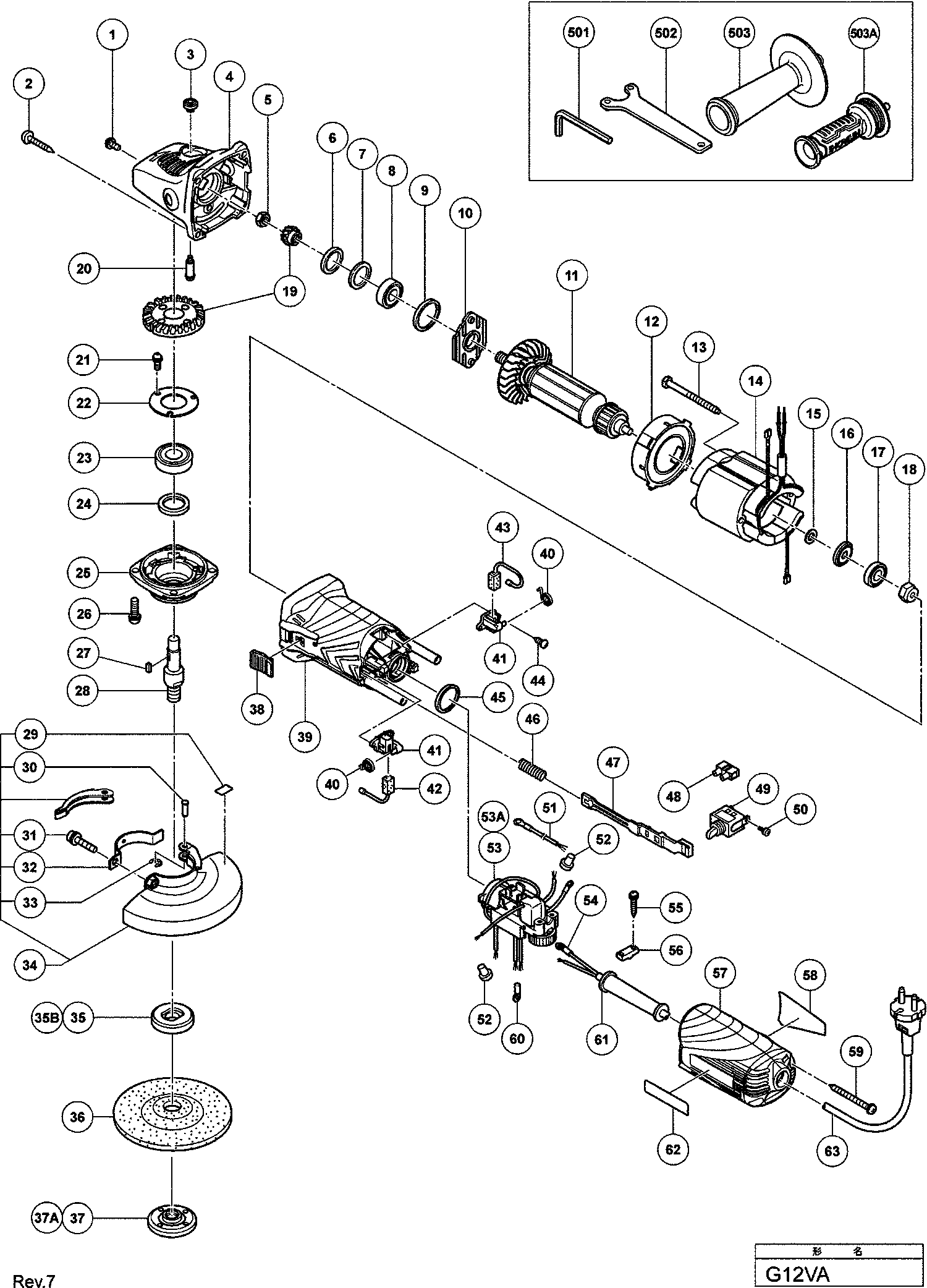 Lista de las piezas de repuesto de Hikoki G12VA