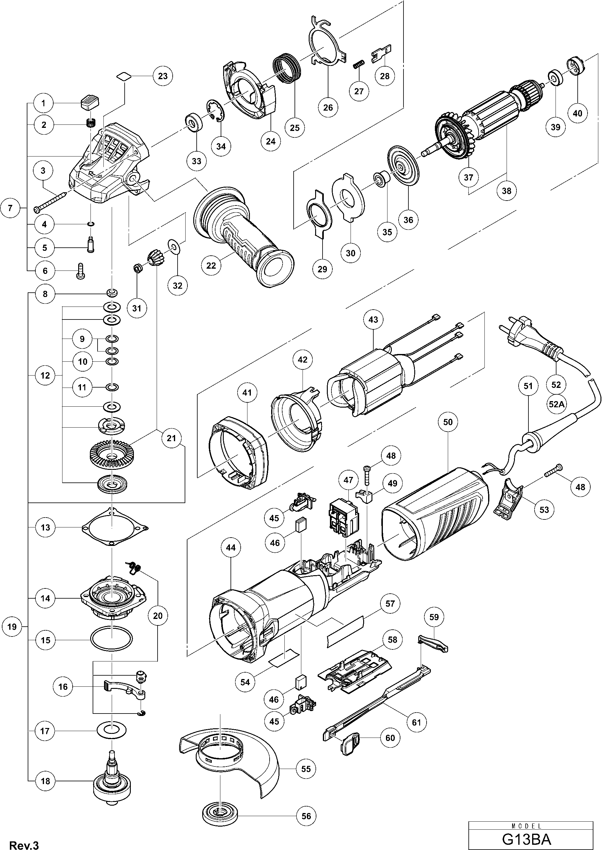 Aquí encontrará todas las piezas y dibujos técnicos disponibles de 'Hikoki G13BA'. Desde aquí podrá pedir todas las piezas deseadas directamente. Para muchas piezas de repuesto, es necesario pasar un pedido al fabricante. Dependiendo de la marca, el plazo de entrega puede variar entre una y cuatro semanas. Toda la información que tenemos está en nuestro sitio web. No podremos aconsejarle sobre lo que necesita hasta que entregue la máquina para su reparación. Tenga en cuenta lo siguiente a la hora de cursar su pedido: