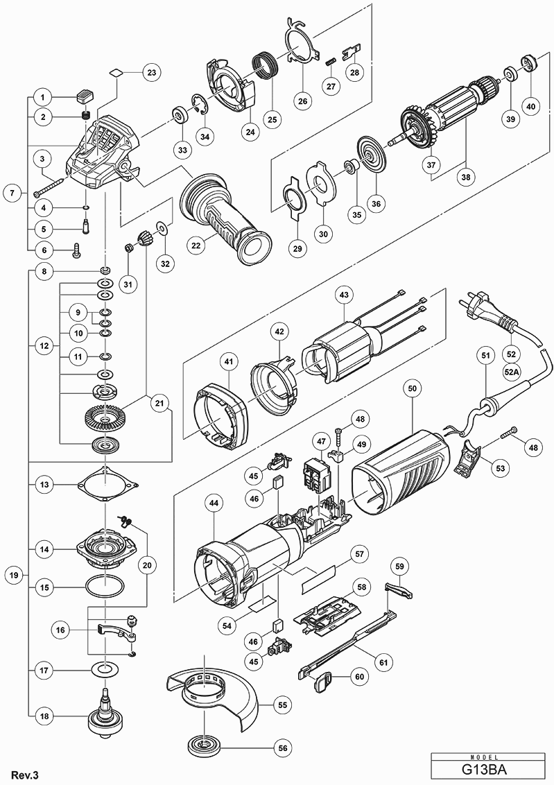 Lista de las piezas de repuesto de Hikoki G13BAWQZ