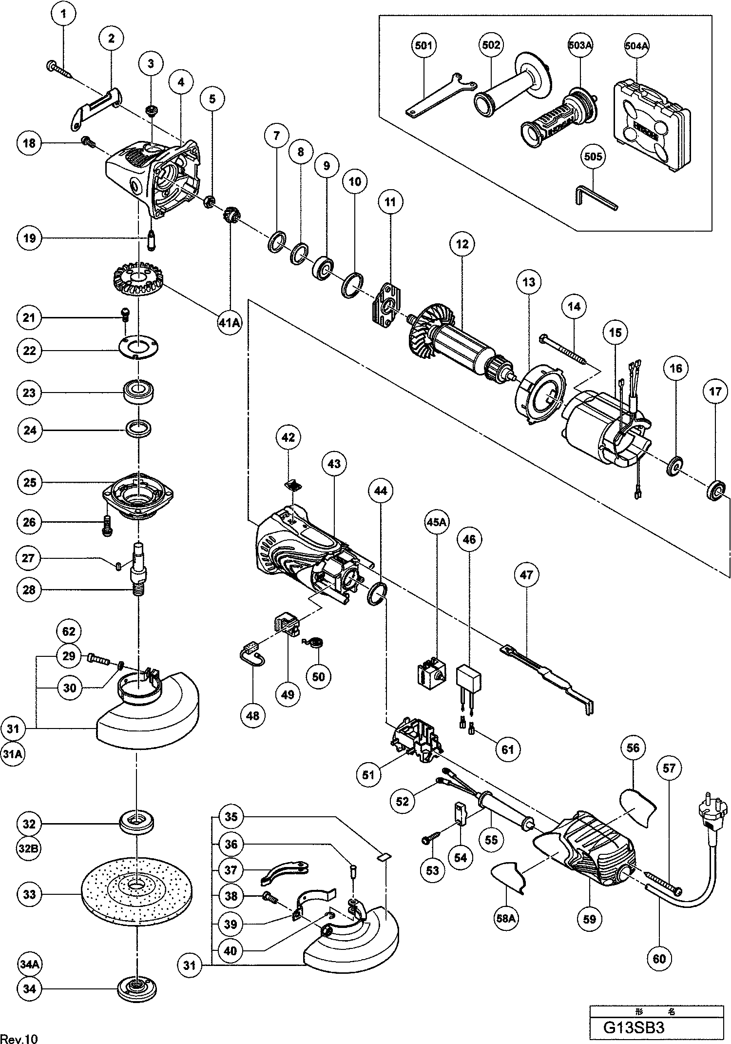 Lista de las piezas de repuesto de Hikoki G13SB3
