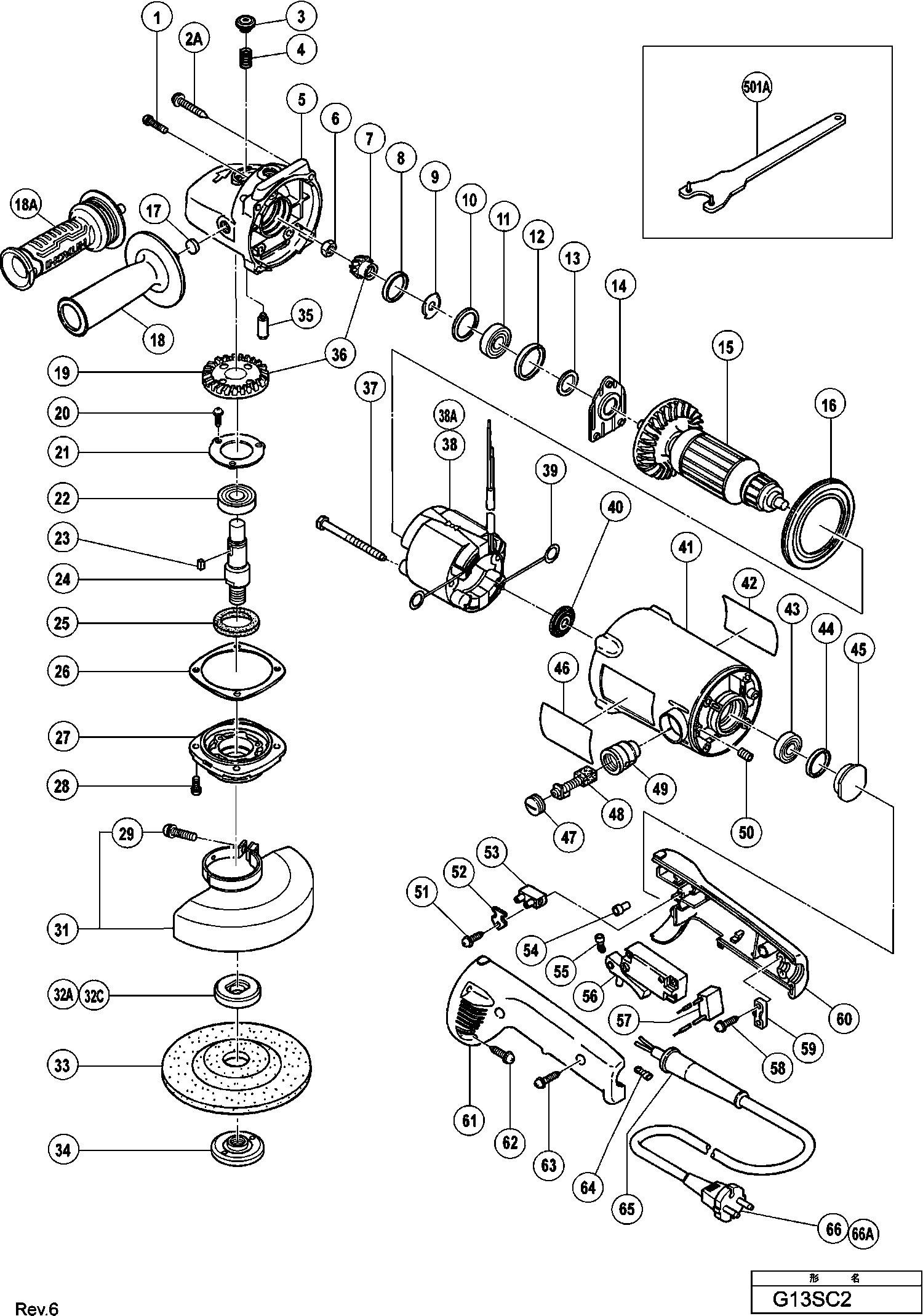 Lista de las piezas de repuesto de Hikoki G13SC2