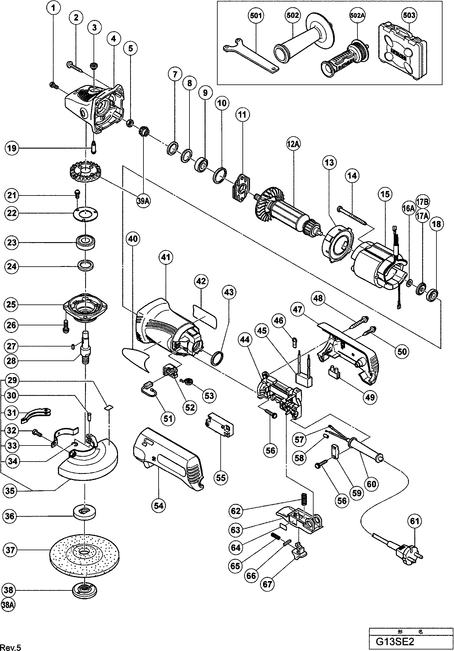 Lista de las piezas de repuesto de Hikoki G13SE2
