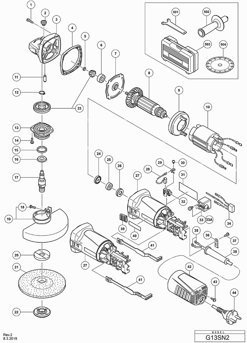 Aquí encontrará todas las piezas y dibujos técnicos disponibles de 'Hikoki G13SN2Y3Z'. Desde aquí podrá pedir todas las piezas deseadas directamente. Para muchas piezas de repuesto, es necesario pasar un pedido al fabricante. Dependiendo de la marca, el plazo de entrega puede variar entre una y cuatro semanas. Toda la información que tenemos está en nuestro sitio web. No podremos aconsejarle sobre lo que necesita hasta que entregue la máquina para su reparación. Tenga en cuenta lo siguiente a la hora de cursar su pedido: