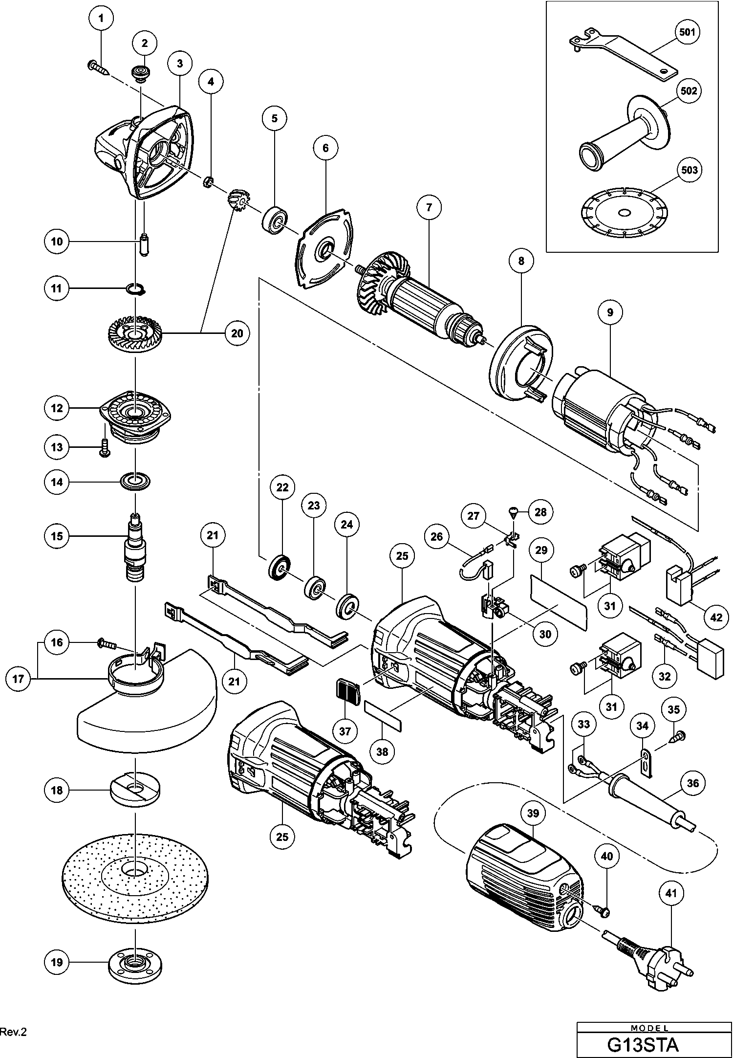 Aquí encontrará todas las piezas y dibujos técnicos disponibles de 'Hikoki G13STA'. Desde aquí podrá pedir todas las piezas deseadas directamente. Para muchas piezas de repuesto, es necesario pasar un pedido al fabricante. Dependiendo de la marca, el plazo de entrega puede variar entre una y cuatro semanas. Toda la información que tenemos está en nuestro sitio web. No podremos aconsejarle sobre lo que necesita hasta que entregue la máquina para su reparación. Tenga en cuenta lo siguiente a la hora de cursar su pedido: