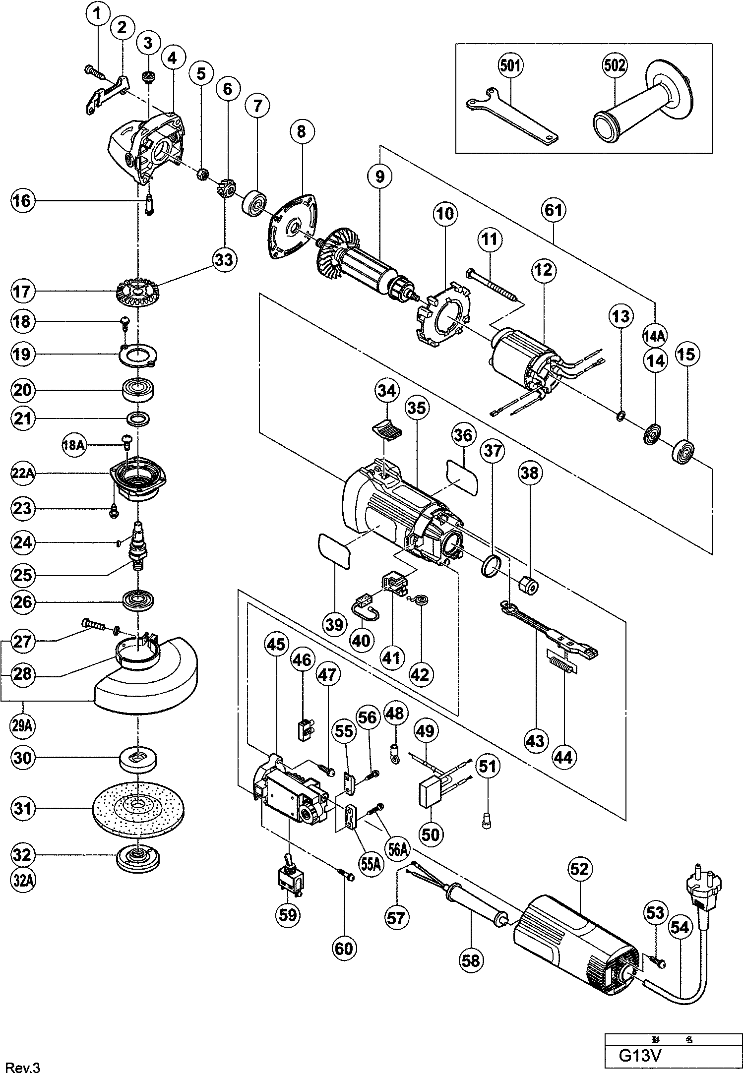 Aquí encontrará todas las piezas y dibujos técnicos disponibles de 'Hikoki G13V'. Desde aquí podrá pedir todas las piezas deseadas directamente. Para muchas piezas de repuesto, es necesario pasar un pedido al fabricante. Dependiendo de la marca, el plazo de entrega puede variar entre una y cuatro semanas. Toda la información que tenemos está en nuestro sitio web. No podremos aconsejarle sobre lo que necesita hasta que entregue la máquina para su reparación. Tenga en cuenta lo siguiente a la hora de cursar su pedido: