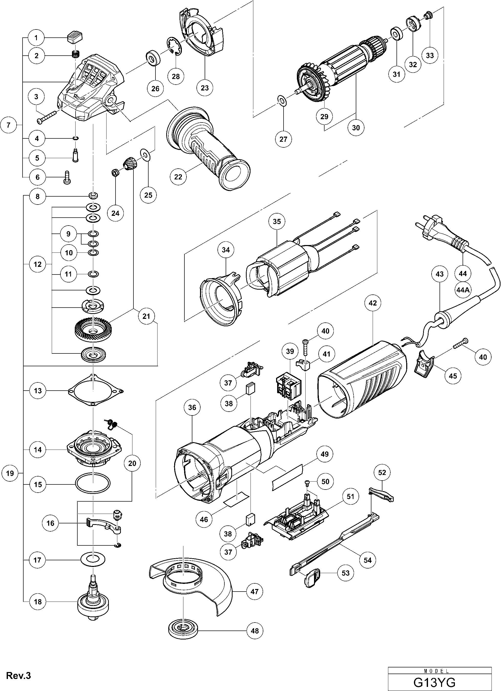 Aquí encontrará todas las piezas y dibujos técnicos disponibles de 'Hikoki G13YG'. Desde aquí podrá pedir todas las piezas deseadas directamente. Para muchas piezas de repuesto, es necesario pasar un pedido al fabricante. Dependiendo de la marca, el plazo de entrega puede variar entre una y cuatro semanas. Toda la información que tenemos está en nuestro sitio web. No podremos aconsejarle sobre lo que necesita hasta que entregue la máquina para su reparación. Tenga en cuenta lo siguiente a la hora de cursar su pedido: