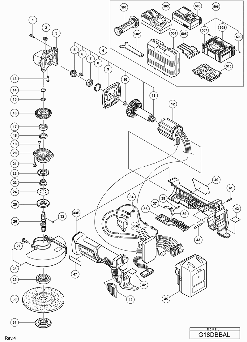 Lista de las piezas de repuesto de Hikoki G18DBBALWQZ