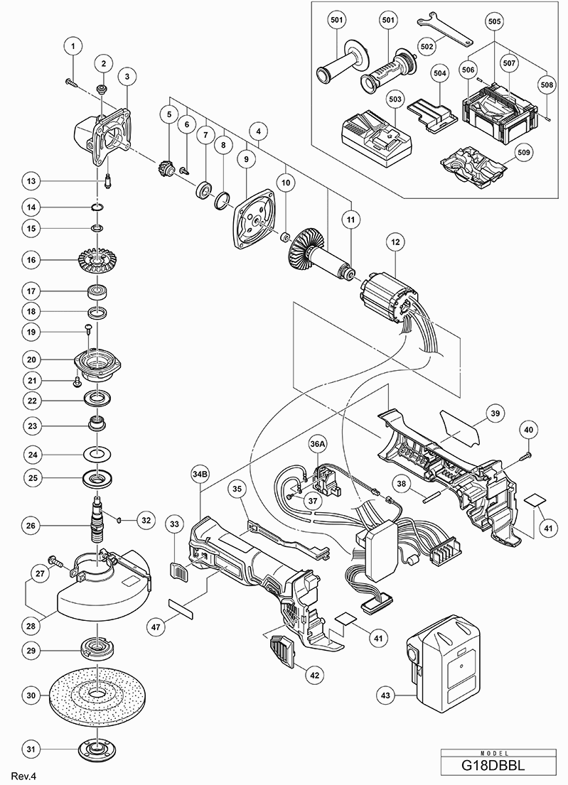 Lista de las piezas de repuesto de Hikoki G18DBBLWQZ