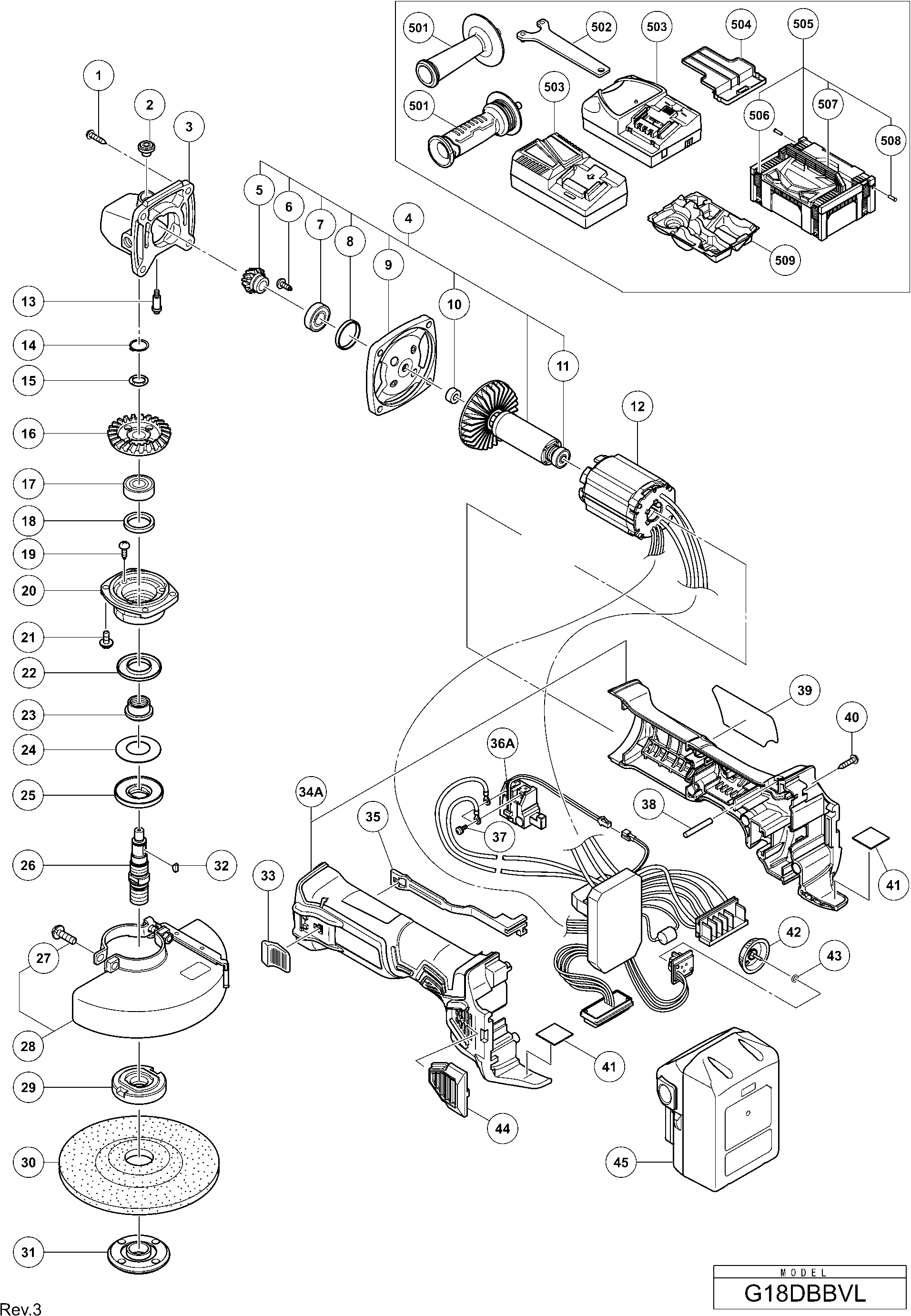 Lista de las piezas de repuesto de Hikoki G18DBBVL