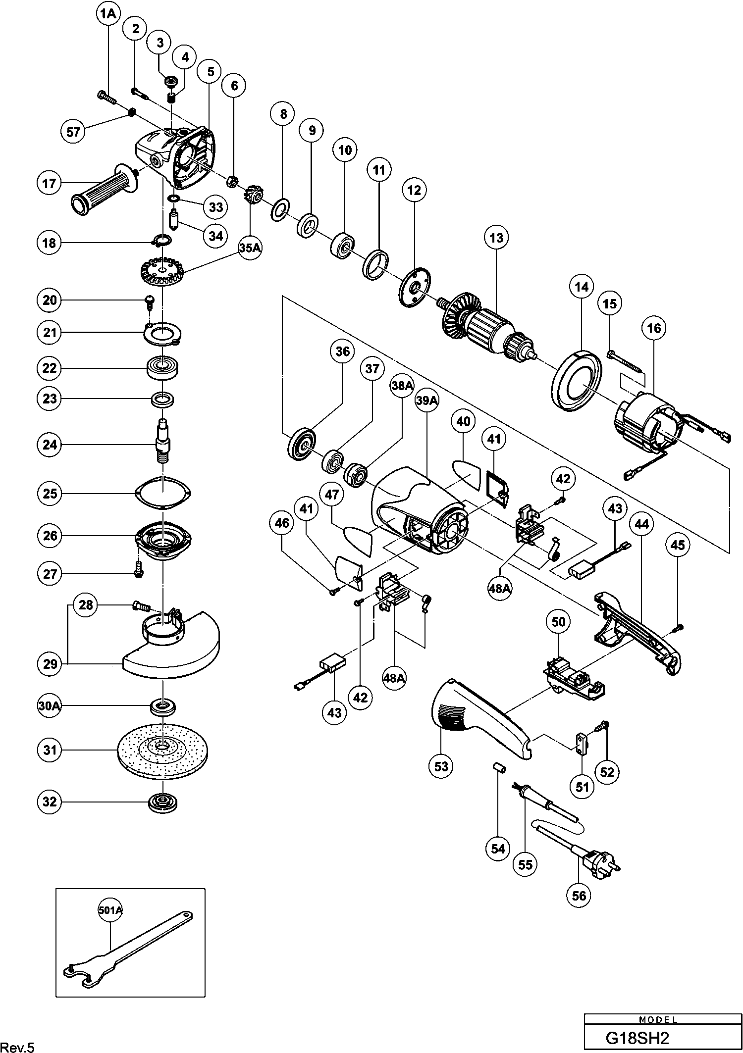 Lista de las piezas de repuesto de Hikoki G18SH2
