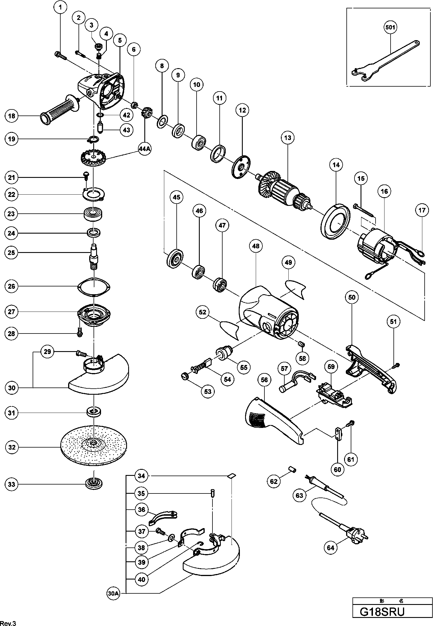 Lista de las piezas de repuesto de Hikoki G18SRU