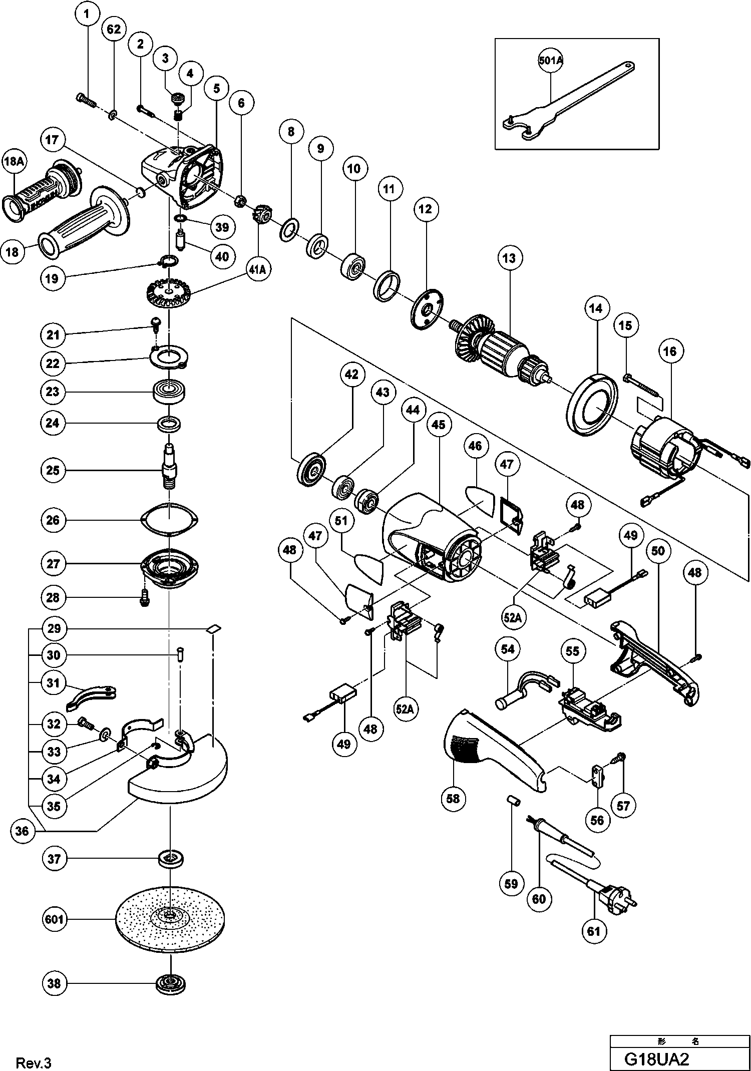 Lista de las piezas de repuesto de Hikoki G18UA2