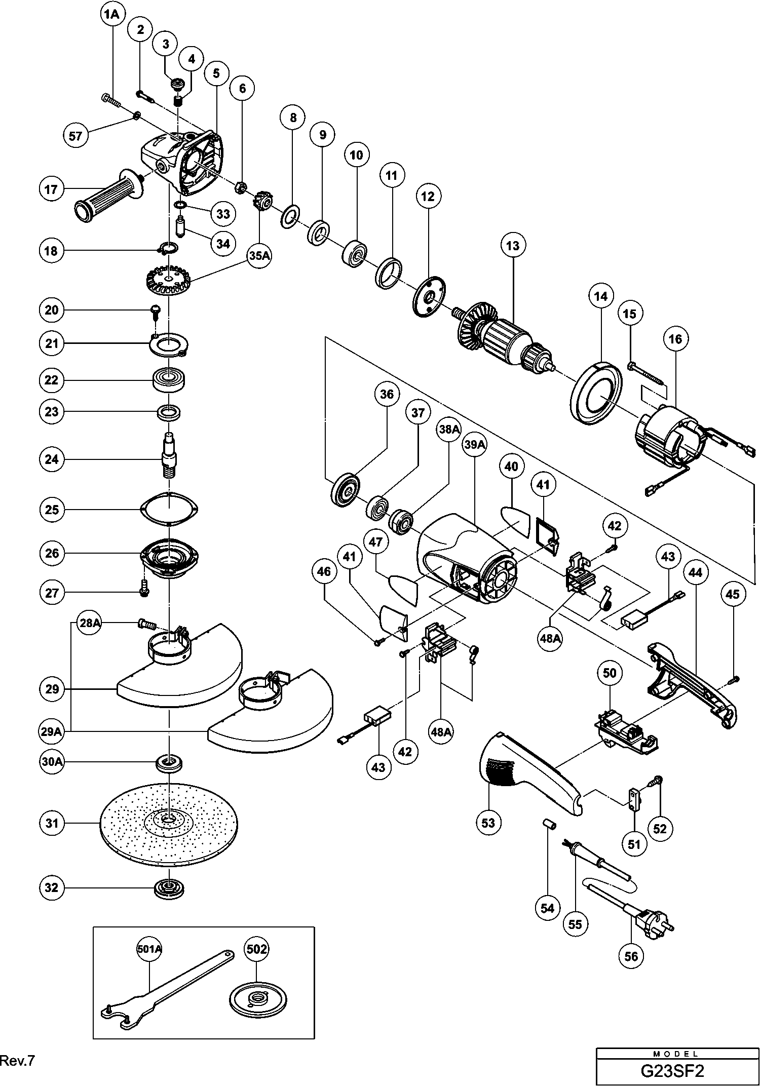 Lista de las piezas de repuesto de Hikoki G23SF2