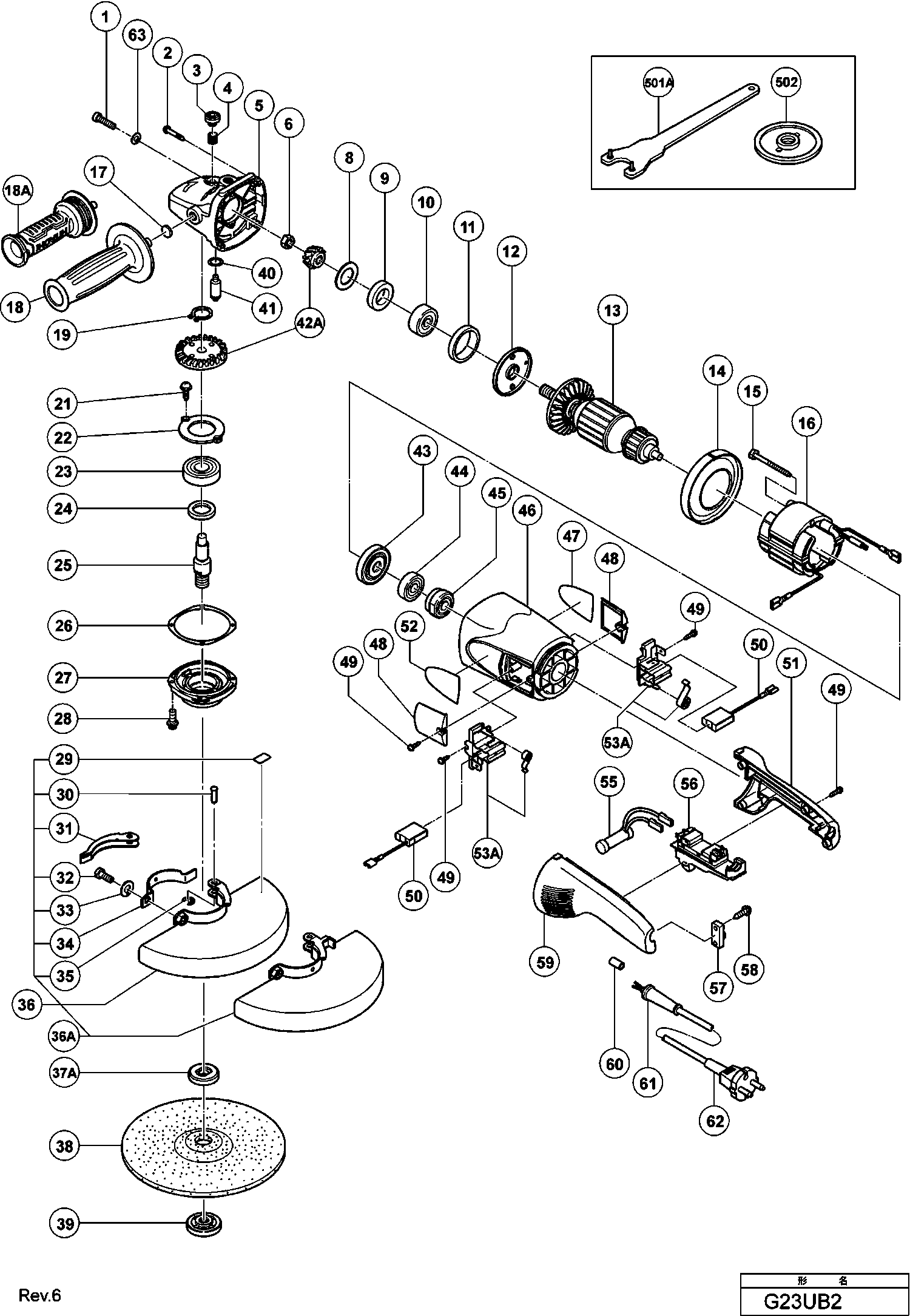 Lista de las piezas de repuesto de Hikoki G23UB2