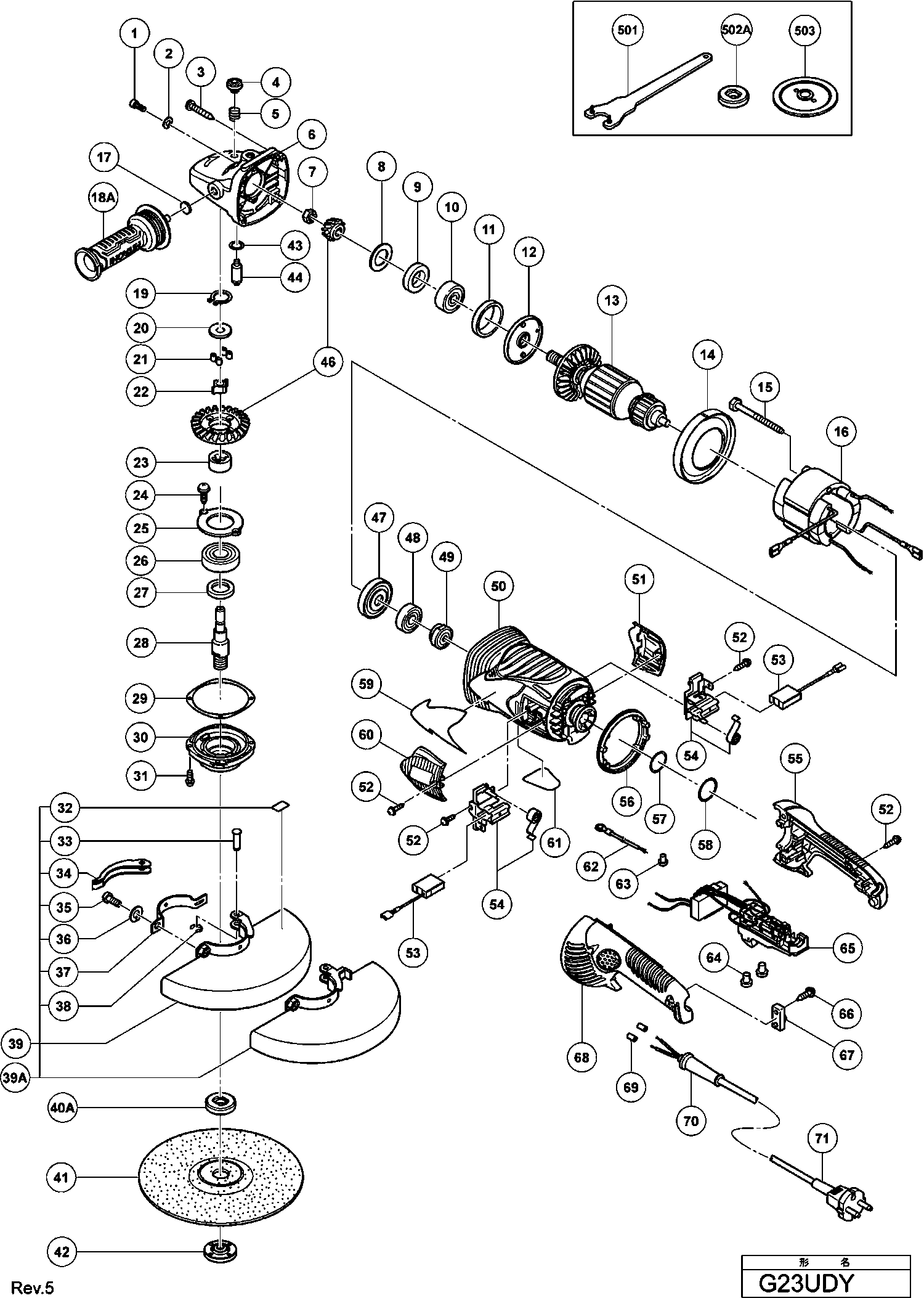 Lista de las piezas de repuesto de Hikoki G23UDY